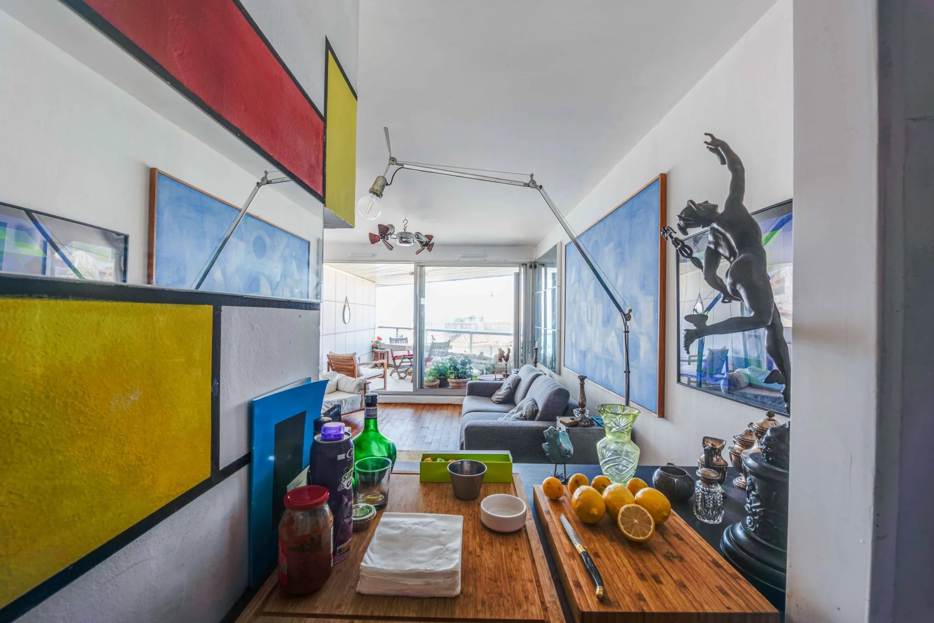 On a high floor with elevator and gardien, it comprises an entrance hall, a living room opening onto a large terrace, a fitted and equipped kitchen with a view, and a bathroom.