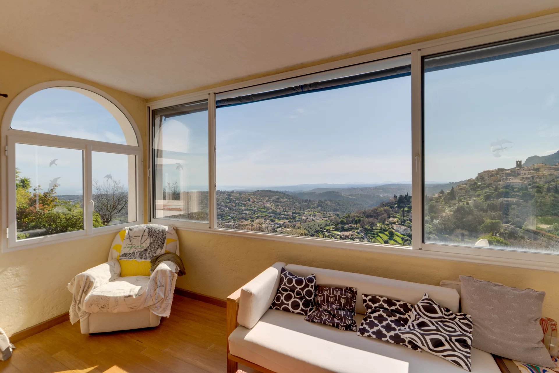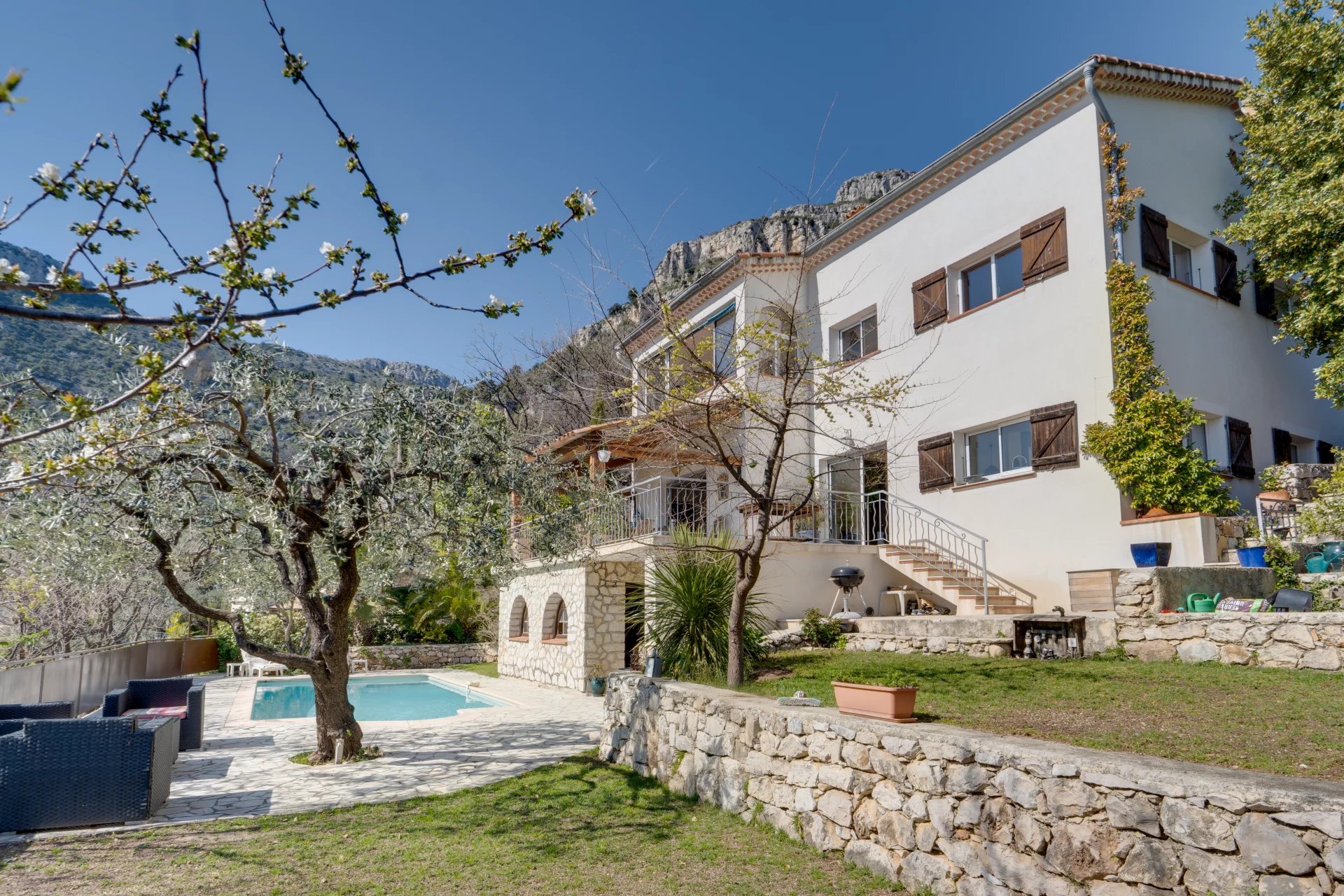 UNDER OFFER - In a dominant position, within the most sought-after residential neighborhood of the area, this charming property boasts breathtaking views from the village of Saint-Jeannet all the way to the sea. With a living space of approximately 175 sqm, it sits on an easy-to-maintain plot of just under 1,000m sqm and offers incredible potential for modernization.