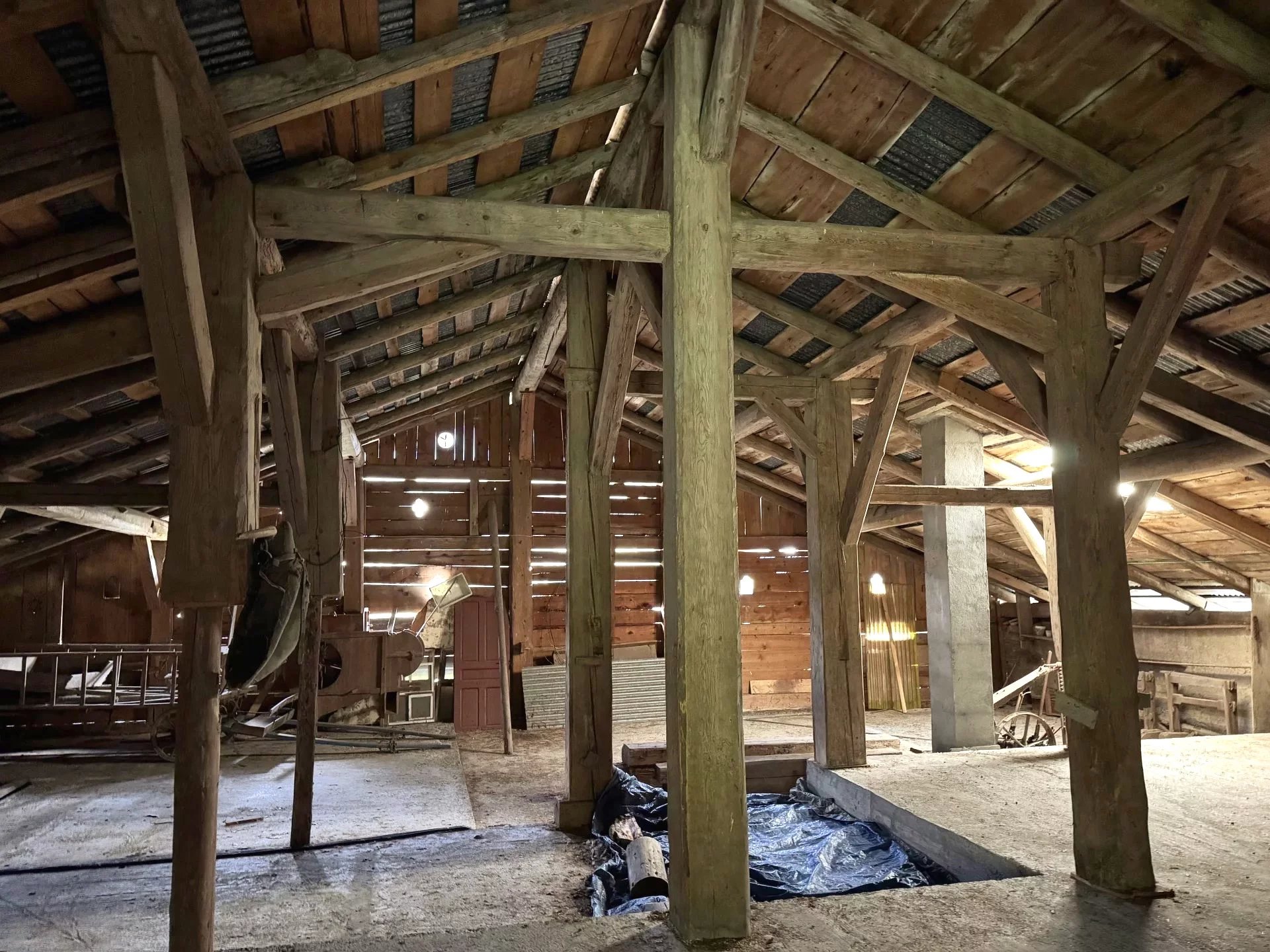 Set in over 2400 m2 of land, the farmhouse has two levels, with a 192 m2 living area on the garden level and a vast cathedral-shaped space with wooden roof frame on the upper level, as well as a barn and a mazot, for a total surface area of around 400 m2.