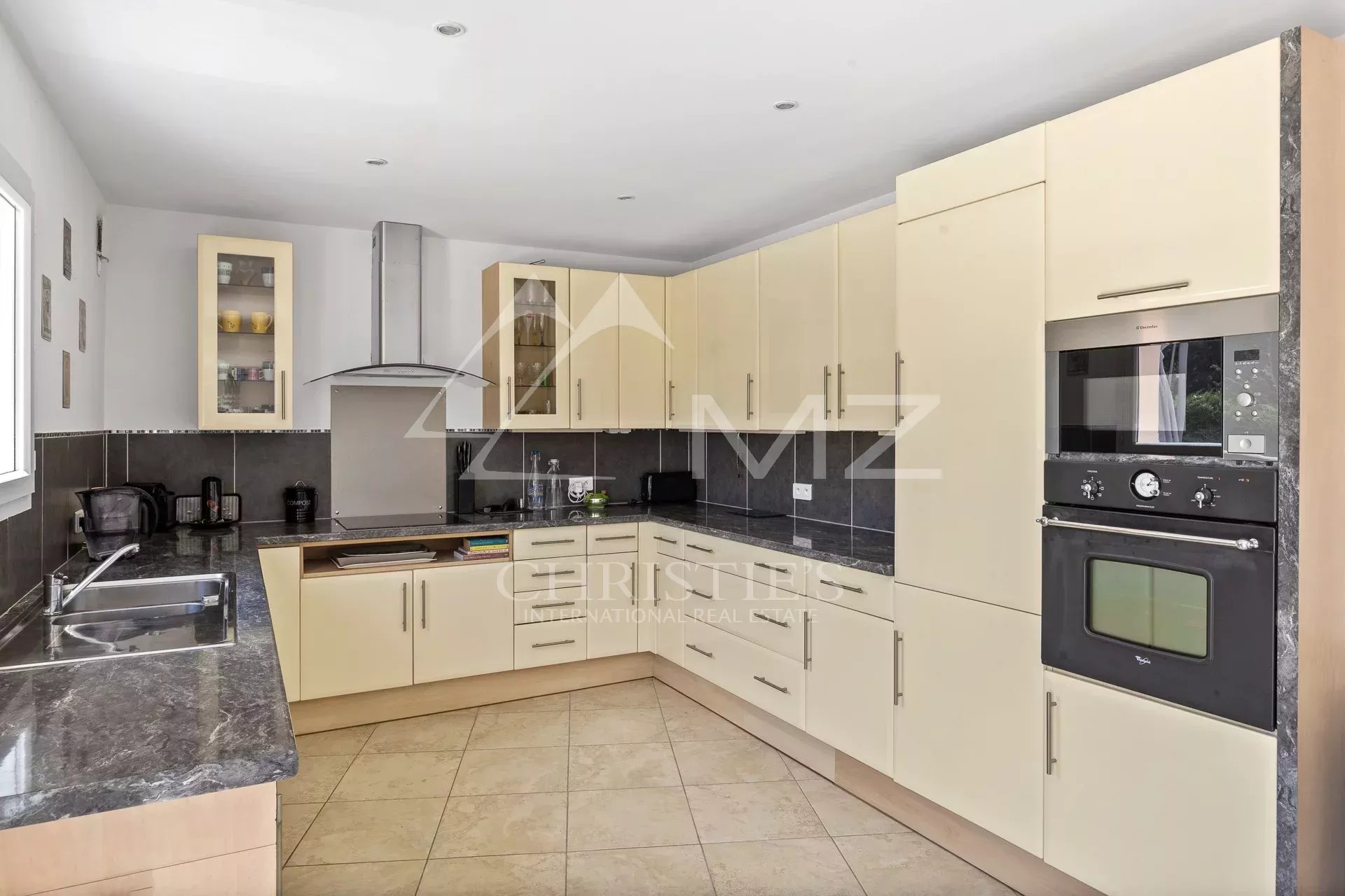 On the edge of a pretty medieval village overlooking the Siagne gorges (for hikers!), on the edge of a wood, you'll discover this 146 sqm villa (203 sqm if you add the 41 sqm garage and the 16 sqm pool house) on landscaped, wooded grounds of 2819 sqm. Ground floor: a 49 sqm living room opening onto a 19 sqm kitchen offering a lovely open-plan living space, 3 bedrooms and a shower room.
