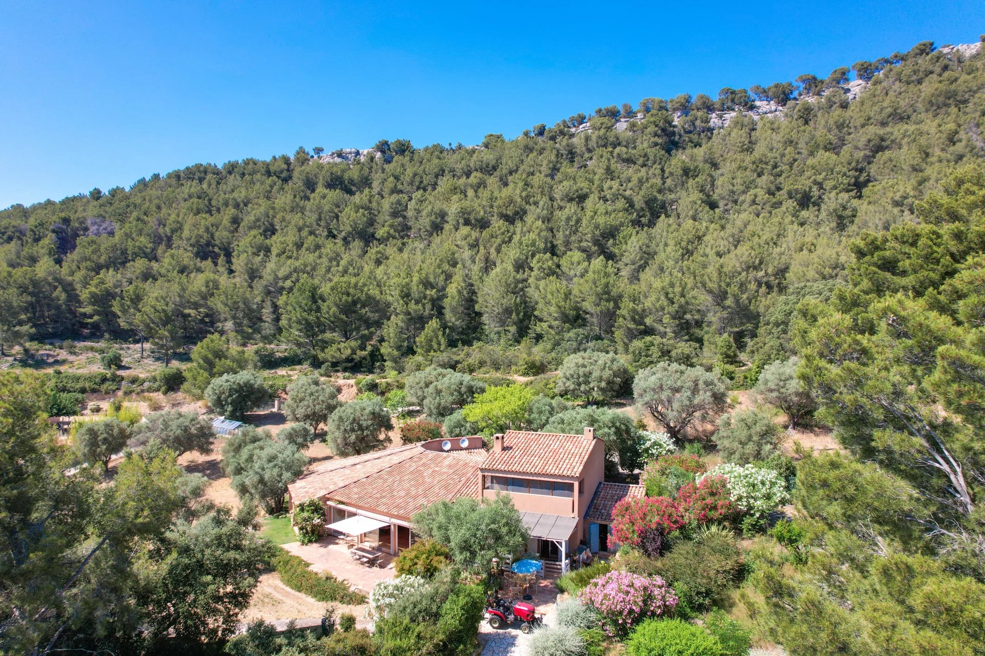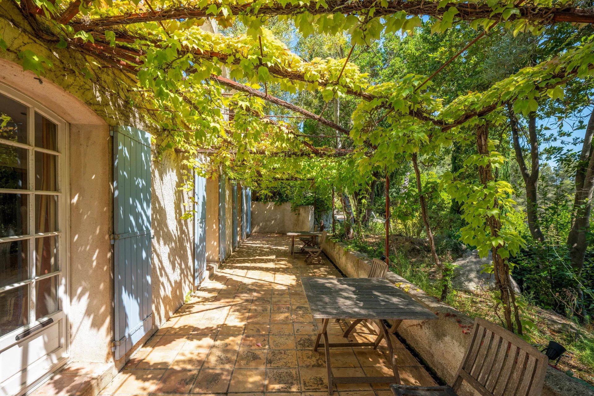 The entire property benefits from multiple landscaped outdoor spaces, including a pétanque court, ample parking, and unobstructed views of the surrounding natural landscapes.