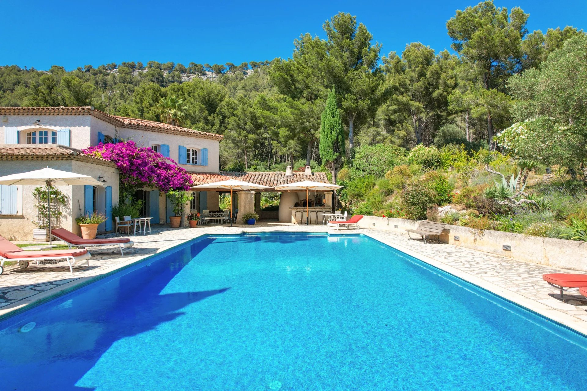 Exclusively for sale, this exceptional property in Saint-Cyr-sur-Mer, just steps from the Frégate golf course and nestled in a preserved natural setting nestled between hills and forest, offers this magnificent, rare property of over 3.3 hectares, boasting lush vegetation, elegant architecture, and an atmosphere of absolute tranquility.