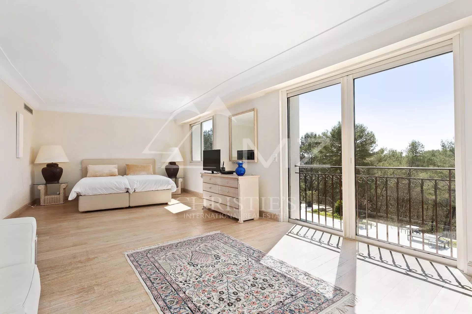 Situated in total peace and quiet place, within easy reach to all amenities, this sumptuous modern style residence has it all : an incredible lush setting with far reaching views, approx. 600 sqm of living space including generous reception areas and a total of 7 bedrooms, a huge swimming pool, a wellness area, a brand new carport for 6 cars, top privacy and safety.
