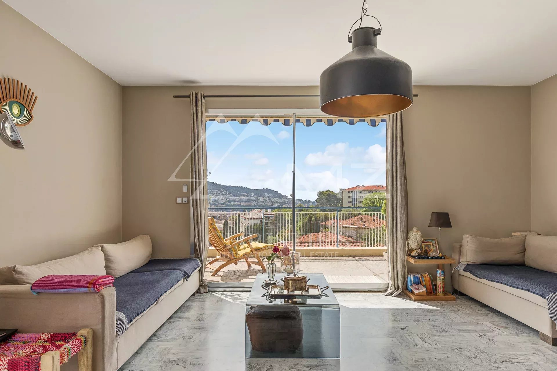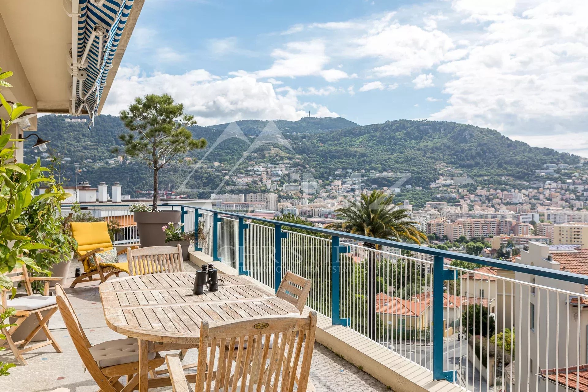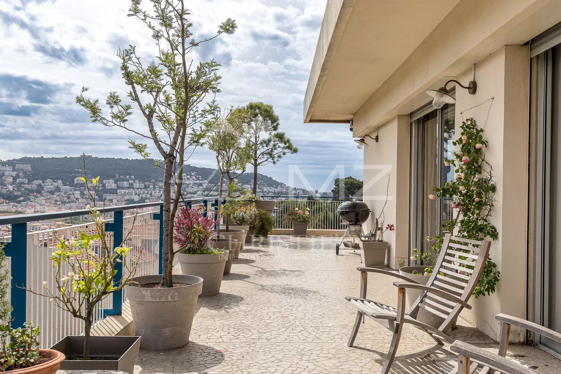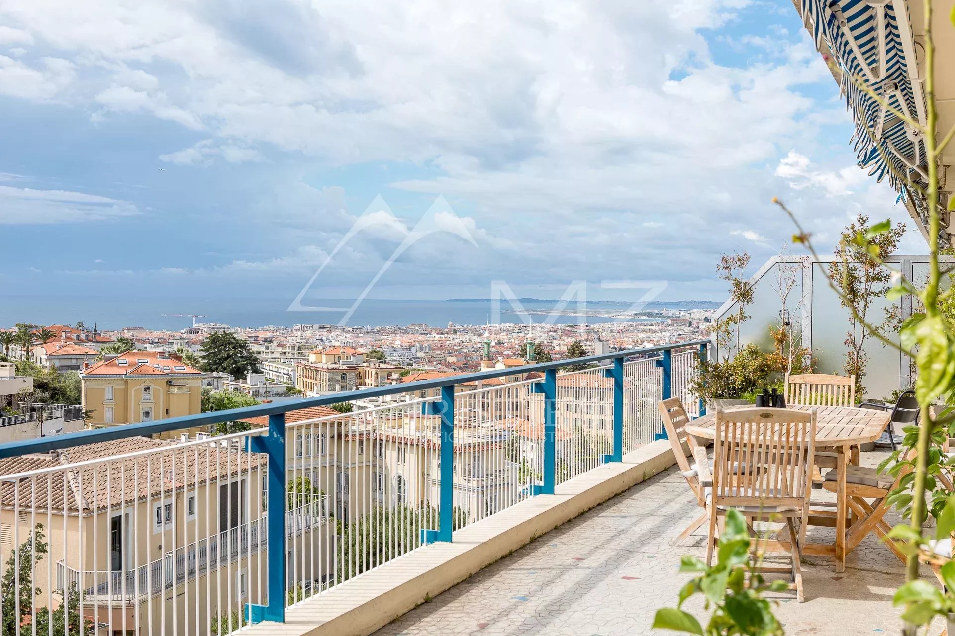 MICHAEL ZINGRAF REAL ESTATE presents you this unique apartment, on the top floor, bathed in sunlight, with its large terrace of 103 m² in triple exposure which offers a breathtaking view on the sea and the mountains. This apartment is located in a quiet and secure residence, surrounded by a very nice garden, and guarded. It is composed of 3 rooms, including 2 bedrooms, without vis-à-vis, an equipped kitchen and a bathroom with a toilet.