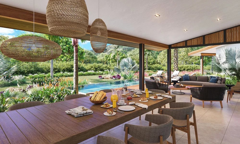 With an incredible view of the Western Mauritian mountain range, Ekô Savannah enjoys an exceptional location, at the gateway to the bustling Tamarin area, with its surf spots, golf course and shops. Just a few minutes from the bay and the most beautiful spots on the west coast, the incredible natural beauty of the panorama blends subtly with the refined contemporary architecture of the 47 prestigious villas on this vast private estate. From 3 to 5 bedrooms, each with a private pool and large garden, they are like a lush oasis in the heart of the wilderness.