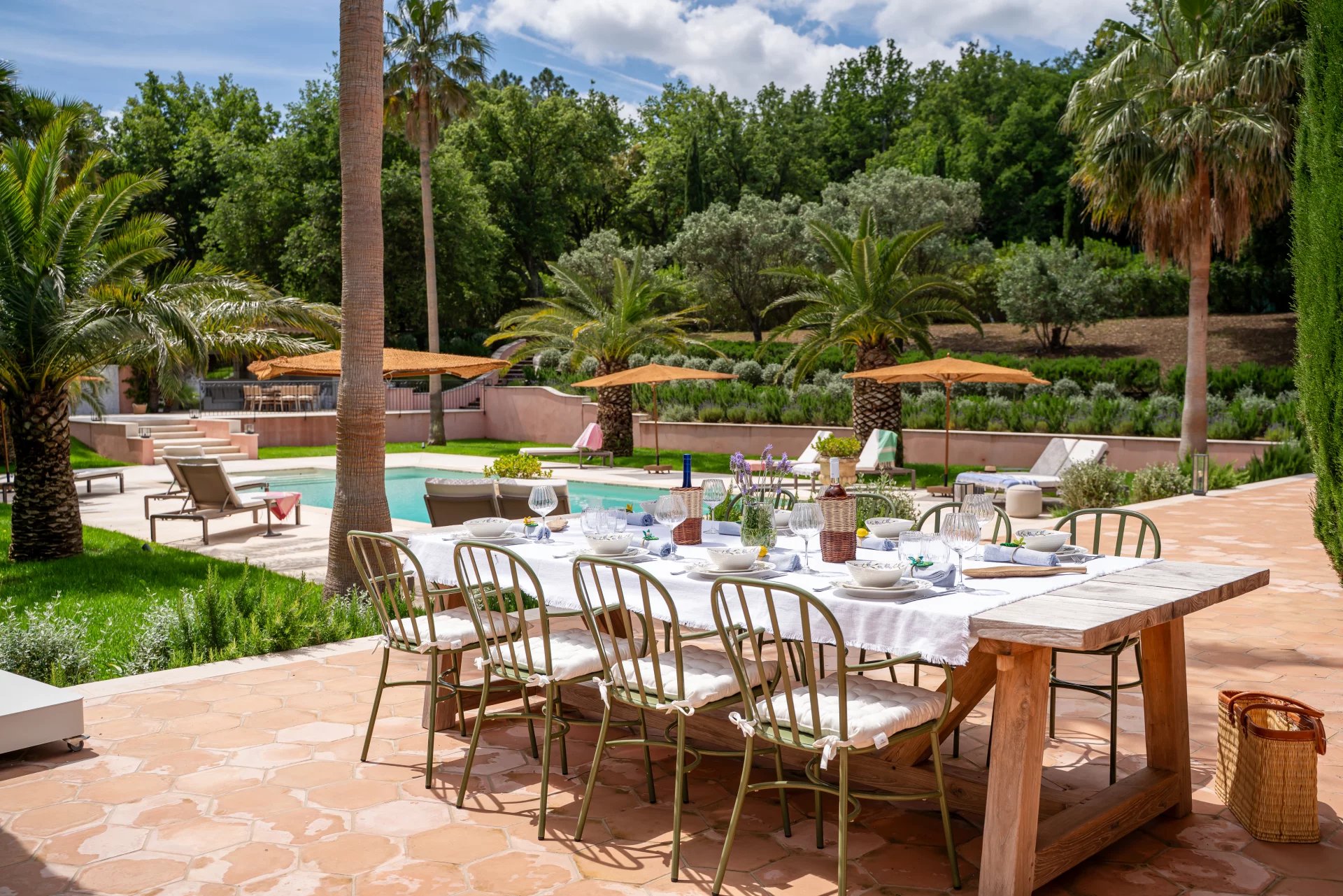 The neo-Provençal villa blends harmoniously into its natural surroundings. Its large, beautifully wooded grounds create a soothing atmosphere and offer plenty of opportunities for outdoor relaxation. You'll enjoy a large, crystal-clear swimming pool, surrounded by spacious terraces, and a furnished pool house, including a kitchenette and barbecue for convivial moments with family and friends.