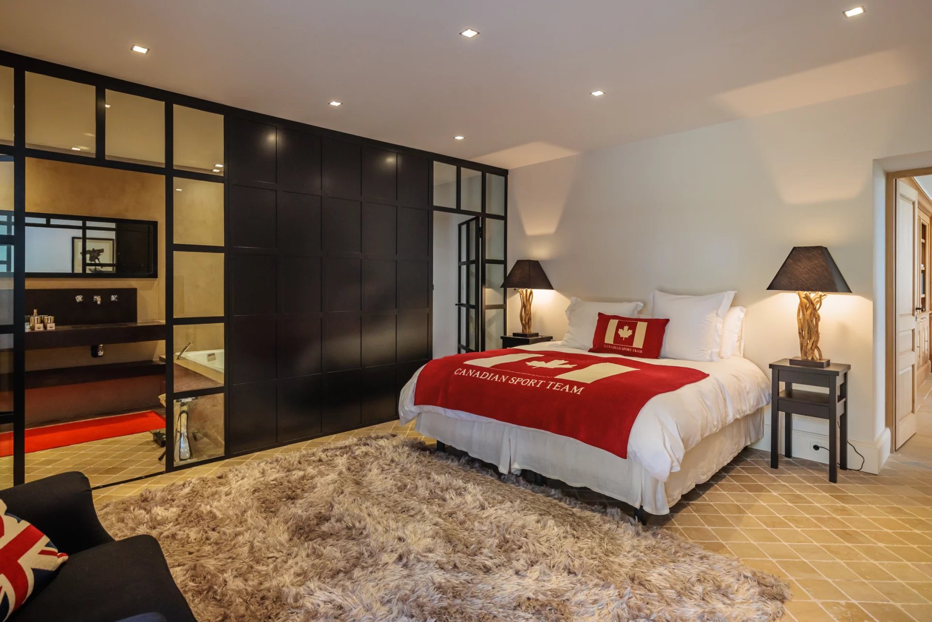 It has a master bedroom with fireplace and bathroom with shower, toilet and dressing room communicating with the second bedroom en suite, as well as 3 other bedrooms with bathroom or showers and a library.