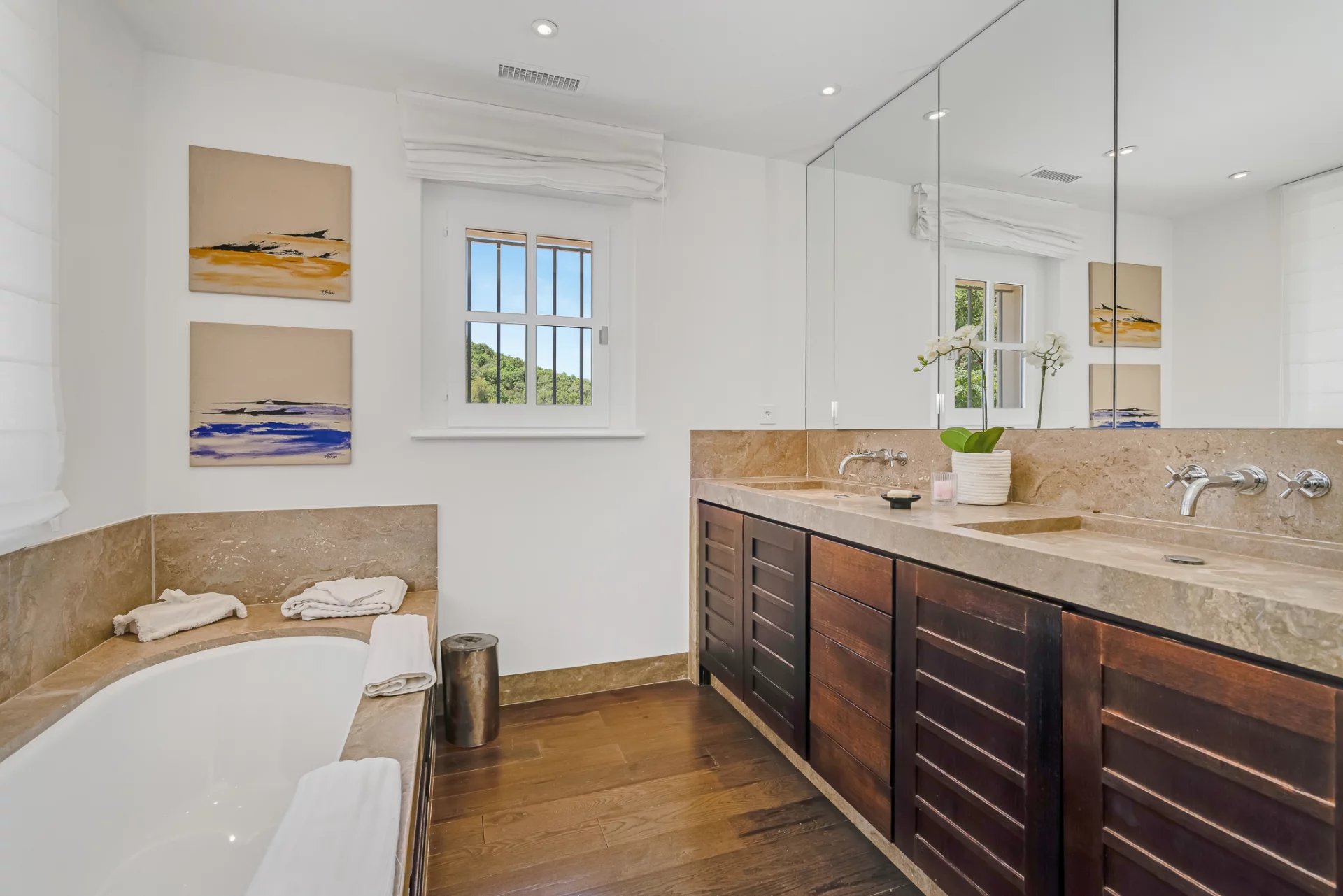Behind its timeless Provençal architecture with a contemporary flair lies a villa designed for connoisseurs of comfort, refinement, and discretion. The interiors offer generous volumes filled with natural light, seamlessly opening onto a beautifully landscaped Mediterranean garden and offering breathtaking panoramic views of the countryside and the sea.