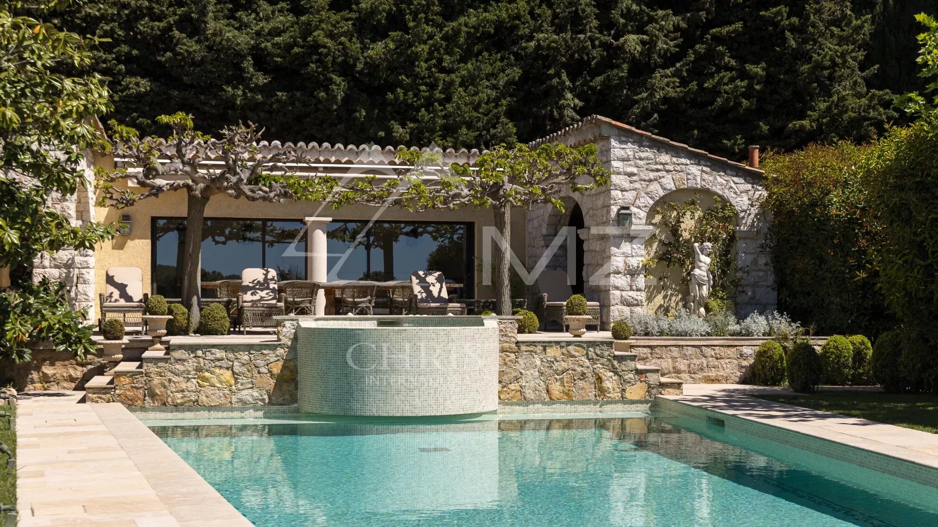 Located in the heart of Californie, in the most prestigious residential area of Cannes, in a quiet environment, very nice residence in perfect condition, built on a land of almost 5,500 sqm, fully landscaped with Mediterranean spirit. The villa boasts a unique park that enhances its charm, featuring a meticulously curated selection of native flora and exquisite landscaping elements. The property offers an amazing panoramic view over the Bay of Cannes, the Lerins Islands, and the Esterel mountains, making it an idyllic retreat that combines natural beauty with modern luxury living.
