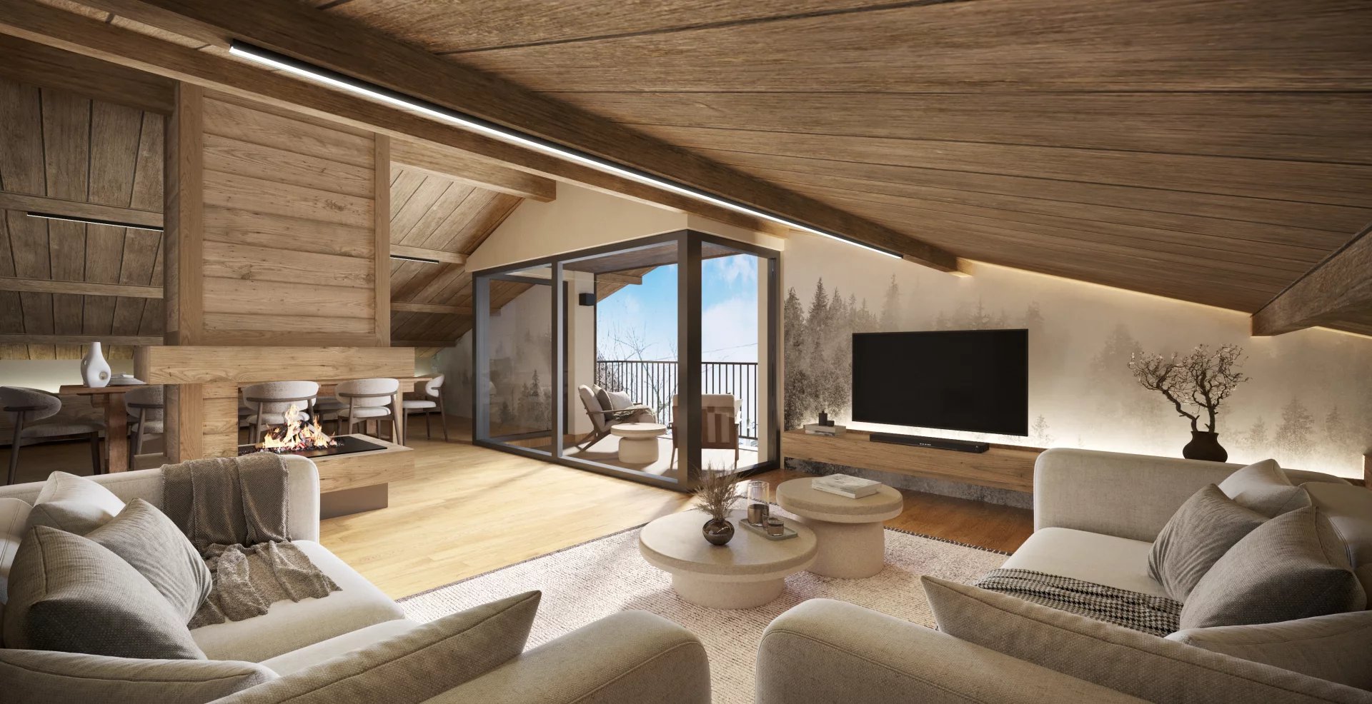 Michaël Zingraf Real Estate Megève presents this sumptuous 143 m² family duplex apartment (total surface area 170 m²), renovated with high-quality materials in a spirit of authenticity and comfort. Located in a quiet neighbourhood with panoramic views, yet within walking distance of Megève, it combines wood and design elements to great effect, offering a spacious living area comprising a lounge-dining room with fireplace and an open-plan fitted kitchen opening onto a terrace. The sleeping area offers four en-suite bedrooms, each with a private bathroom or shower room, perfect for accommodating family and friends.