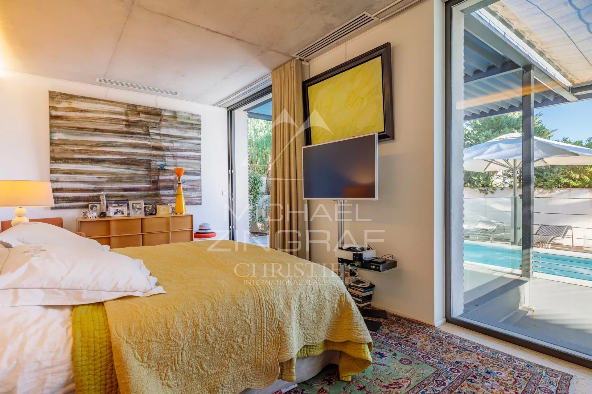 Nestled in the heart of umbrella pines on a plot of approximately 4000 m², this contemporary villa offers an exceptional view of the bay of Pampelonne and the vineyards. On...