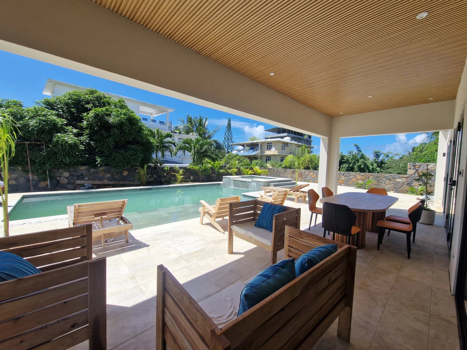 Beautiful Villa for Rent in Calodyne, just 800 m from the beach and 1.4 km from Butte à l’Herbe beach. Land size: 2,000 m² Built area: 406 m² (including terraces,...