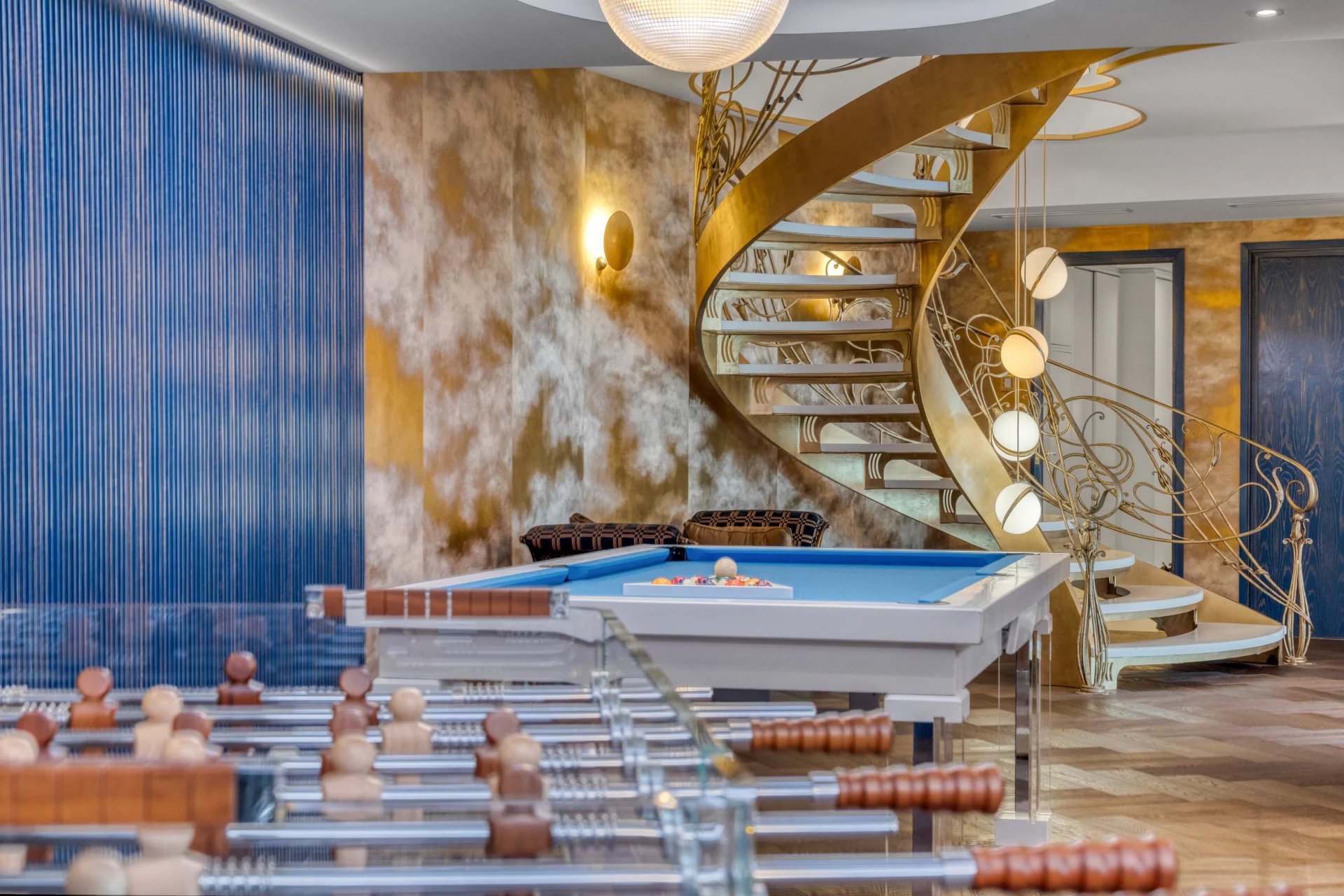 The luminous reception areas open seamlessly onto vast terraces, a sculptural heated pool, and sweeping sea views. The fully equipped kitchen is complemented by a summer kitchen and a dining space that can host up to twenty guests. Additional highlights include a wine cellar, a game room with billiards and table football, and a full wellness area featuring a hammam, sauna, massage room, and private gym.