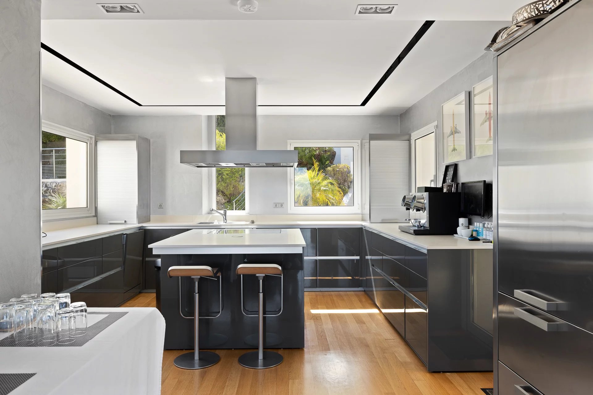 The bright living spaces open onto spectacular panoramic views of the bay. The villa features 7 private suites, including a sumptuous master suite, each equipped with an en-suite bathroom and a private terrace, ensuring absolute comfort and privacy.