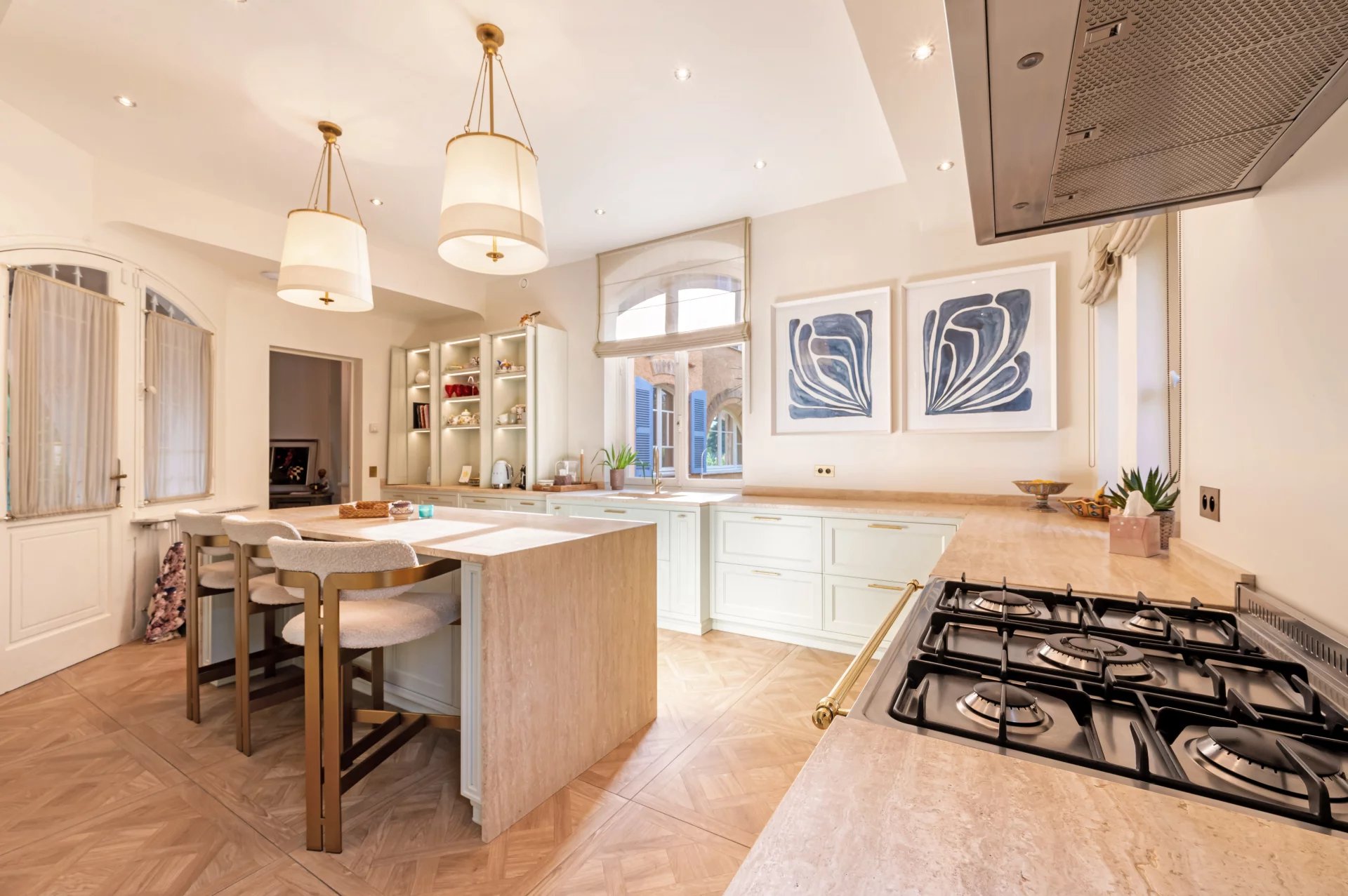 With a living area of ​​450 m² and a garden of 1160 m² including a swimming pool and a pool house, this property offers a spacious double living room with high ceilings, a dining room, a large kitchen, 5 bedrooms with en-suite bathrooms, as well as a wellness area including sauna, hammam and jacuzzi. In addition, there is a billiard room, a laundry room, an independent staff apartment, a garage and three parking spaces.