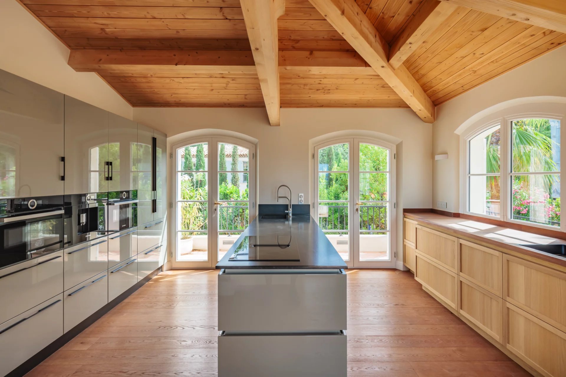 On the 1st floor, a bright, fully-equipped kitchen with a terrace overlooking the unobstructed view.