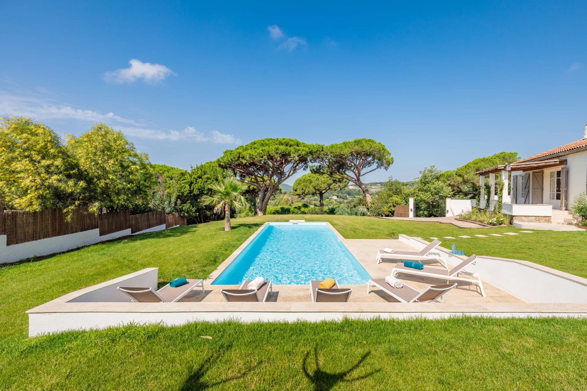 This charming house ideally located a few minutes from the city center and the beaches of Pampelonne enjoys a magnificent view of the hills and the castle of Messardière.