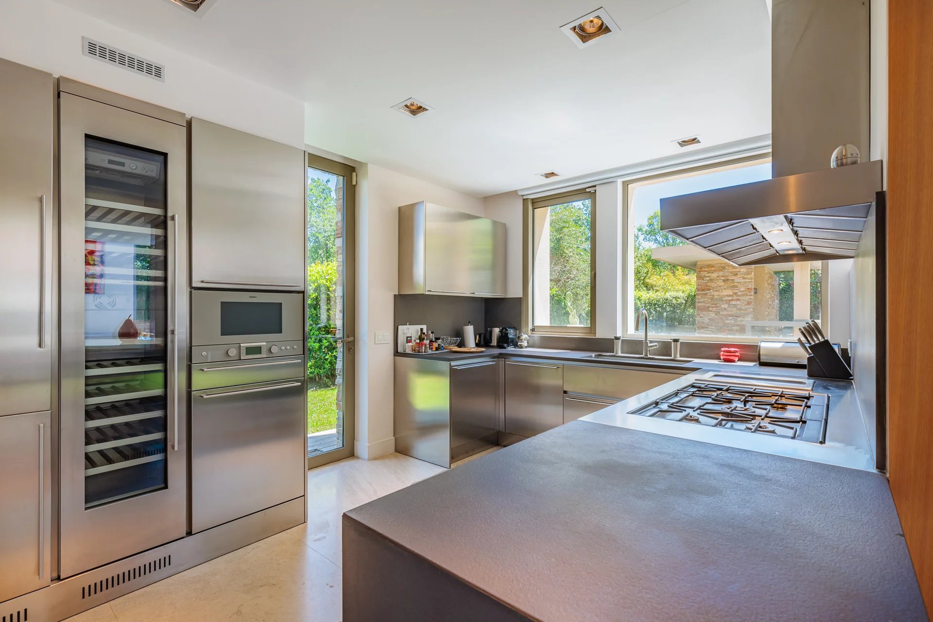 It has 3 levels, offering a bright, open-plan interior with large windows, a pleasant living room, a dining room, a fully-equipped kitchen, several sunny and shady terraces, a petanque area, a pool house, a fully-equipped outdoor summer kitchen with barbecue area and a swimming pool.