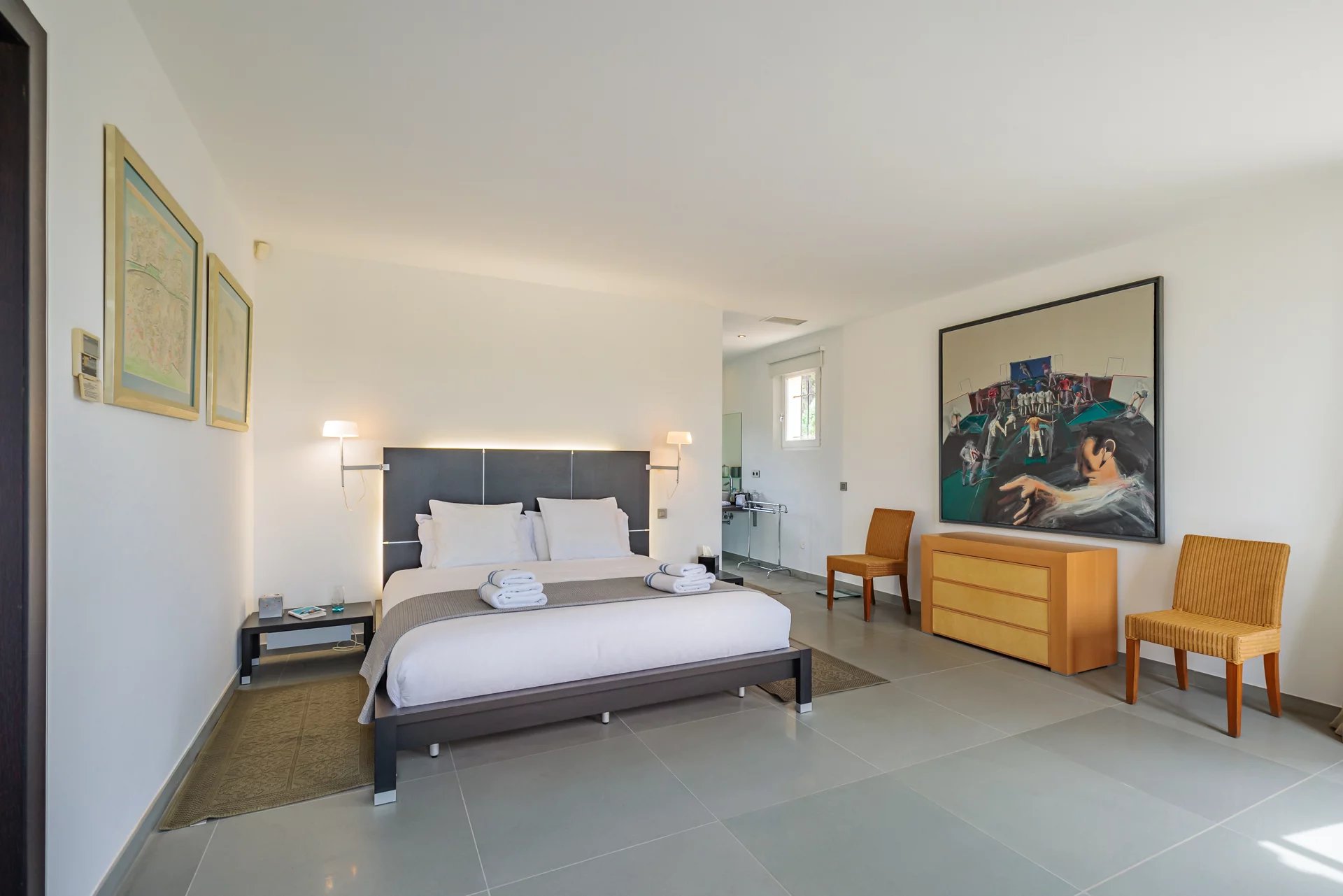 The ground floor comprises a bright living room, dining room and fully-equipped kitchen, plus 2 en suite bedrooms. Upstairs are 4 en suite bedrooms, including a master bedroom with a terrace overlooking the sea.