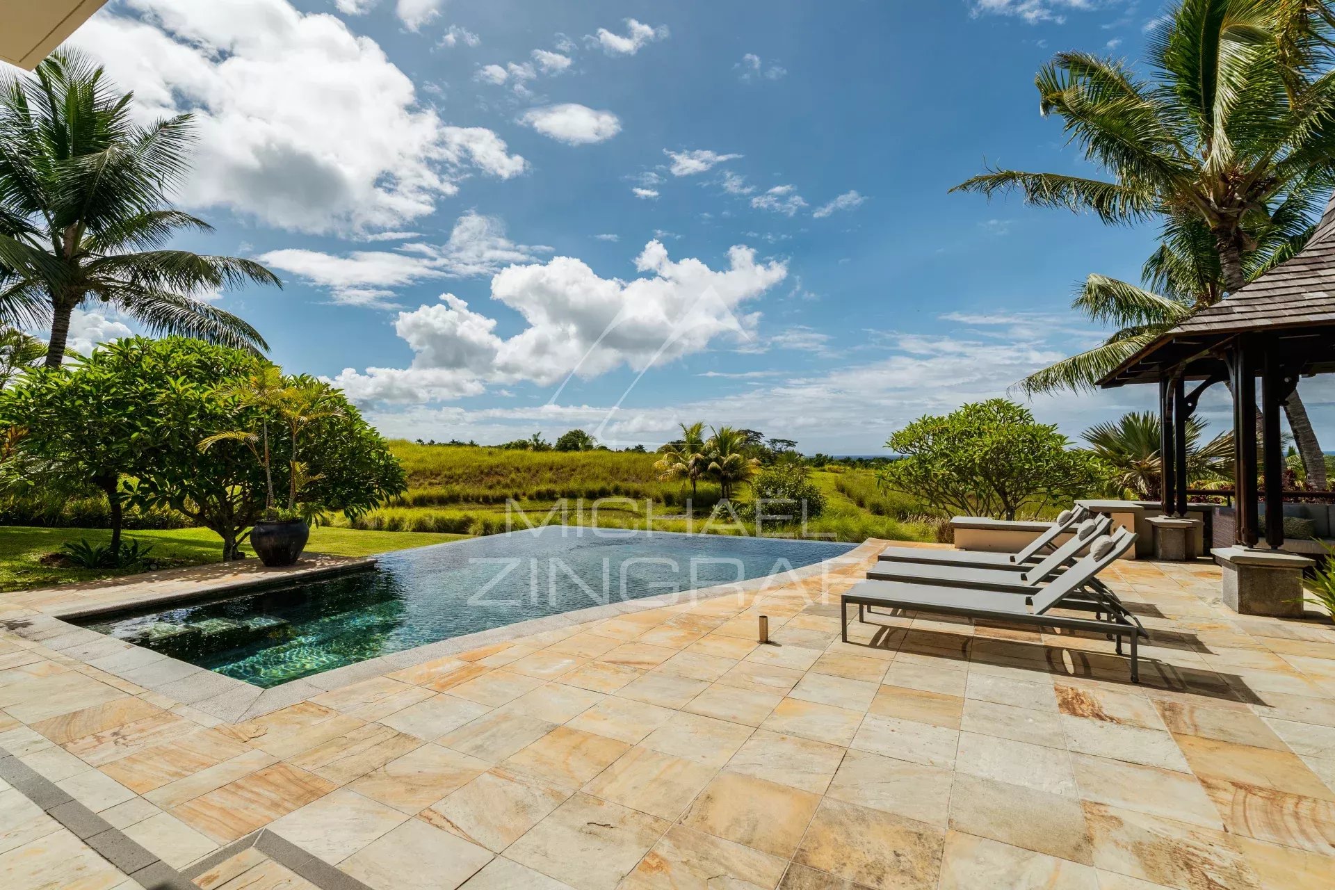 Exceptional villa for sale in the heart of Tamarina Golf Estate & Beach Club. Set on a vast plot of 3,255 m², this elegant 491 m² villa (with an additional...