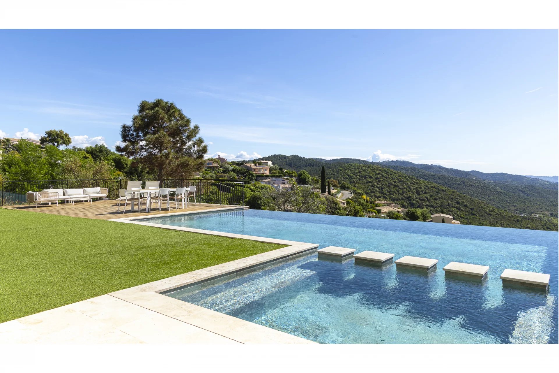 Situated in a private domain with 24/24 security, swimming pool and tennis court, this unoverlooked architect-designed villa offers a very attractive panoramic view over the sea and the surrounding countryside...