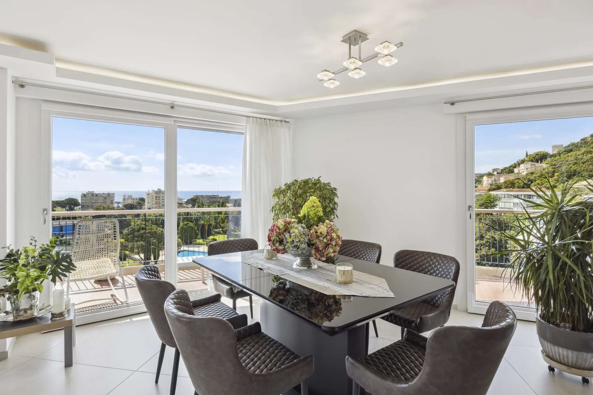 Ideally located in the heart of the Colline des Termes, this modern villa of approximately 300m² recently renovated offers numerous bright living spaces with panoramic views stretching to the sea....
