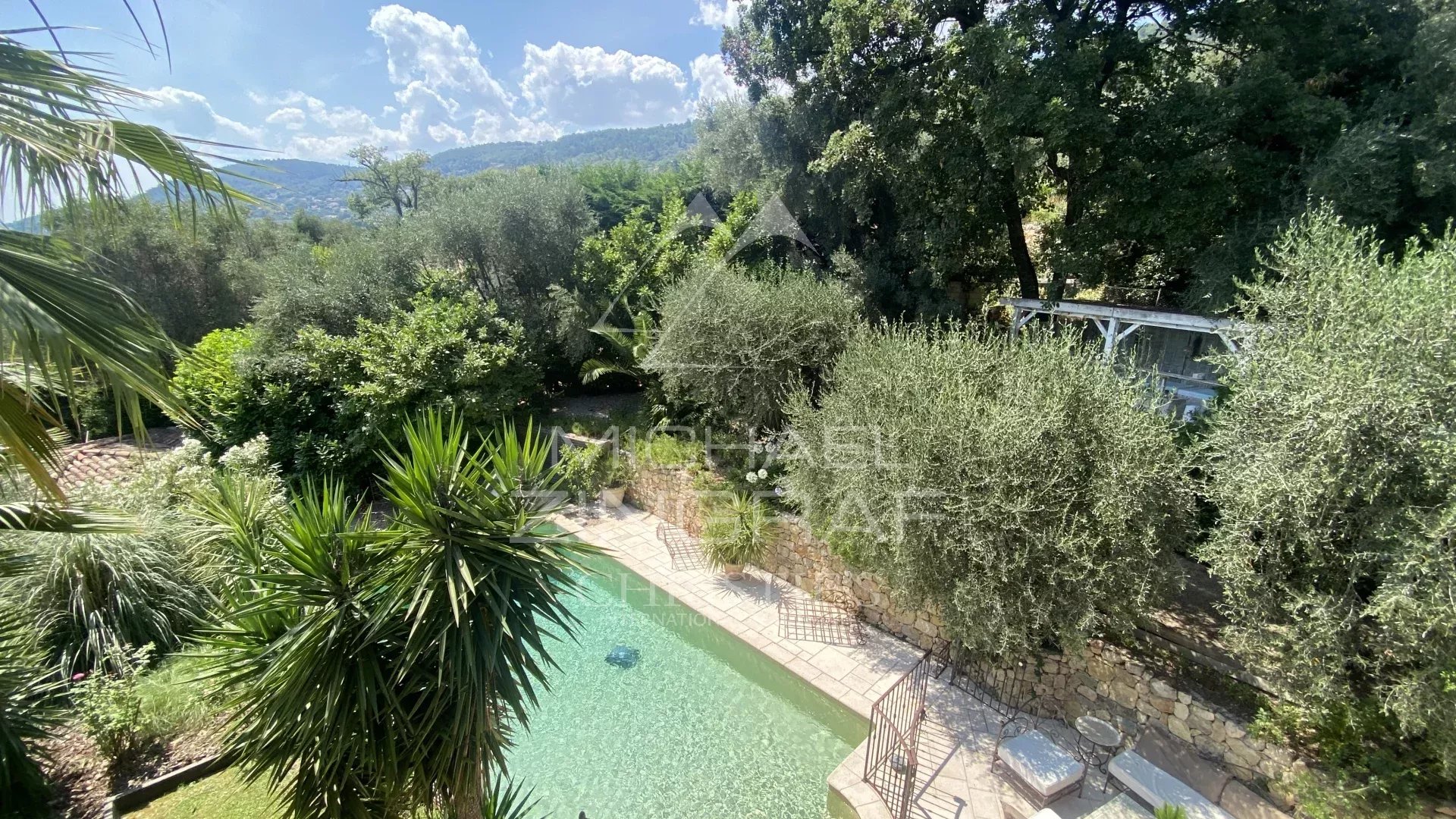 Perched on the heights of Cabris, in the heart of a magnificent olive grove, this 2.5-hectare estate features a main villa, a guest pavilion, and a charming cottage with an...