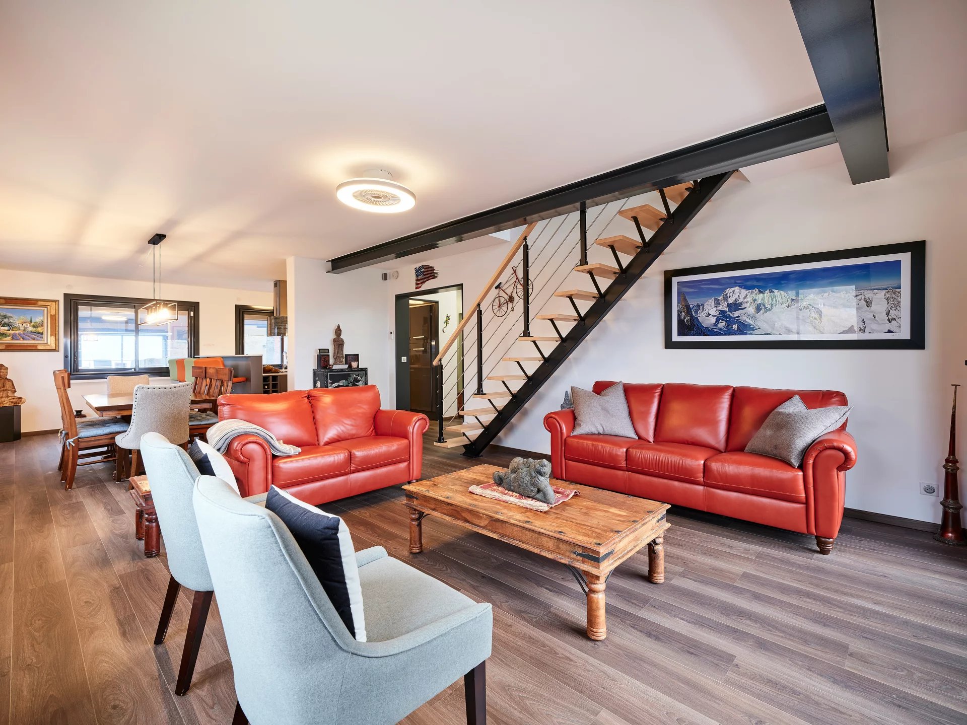 The exceptional houses and villas located on the heights of Annecy offer panoramic views of the lake and the surrounding mountains. These charming residences are often built on large plots of land, allowing for landscaped gardens and swimming pools to fully enjoy the unique environment. The high-quality interior finishes are also a key element in the luxury real estate market in Annecy.