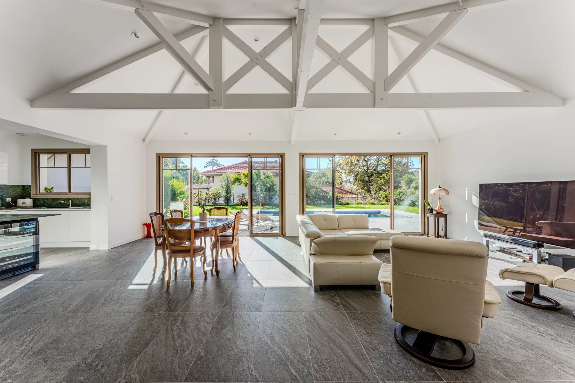 The luxury villas for sale in Gujan-Mestras are located in peaceful and sought-after residential areas, close to the harbor, beaches, or green spaces. They often offer breathtaking views of the Arcachon Bay, the surrounding pine trees, or the Gujan Golf Course. The geographical location of these properties allows you to enjoy the many activities offered by the region: forest walks, water sports, cultural visits, and tasting of local products.