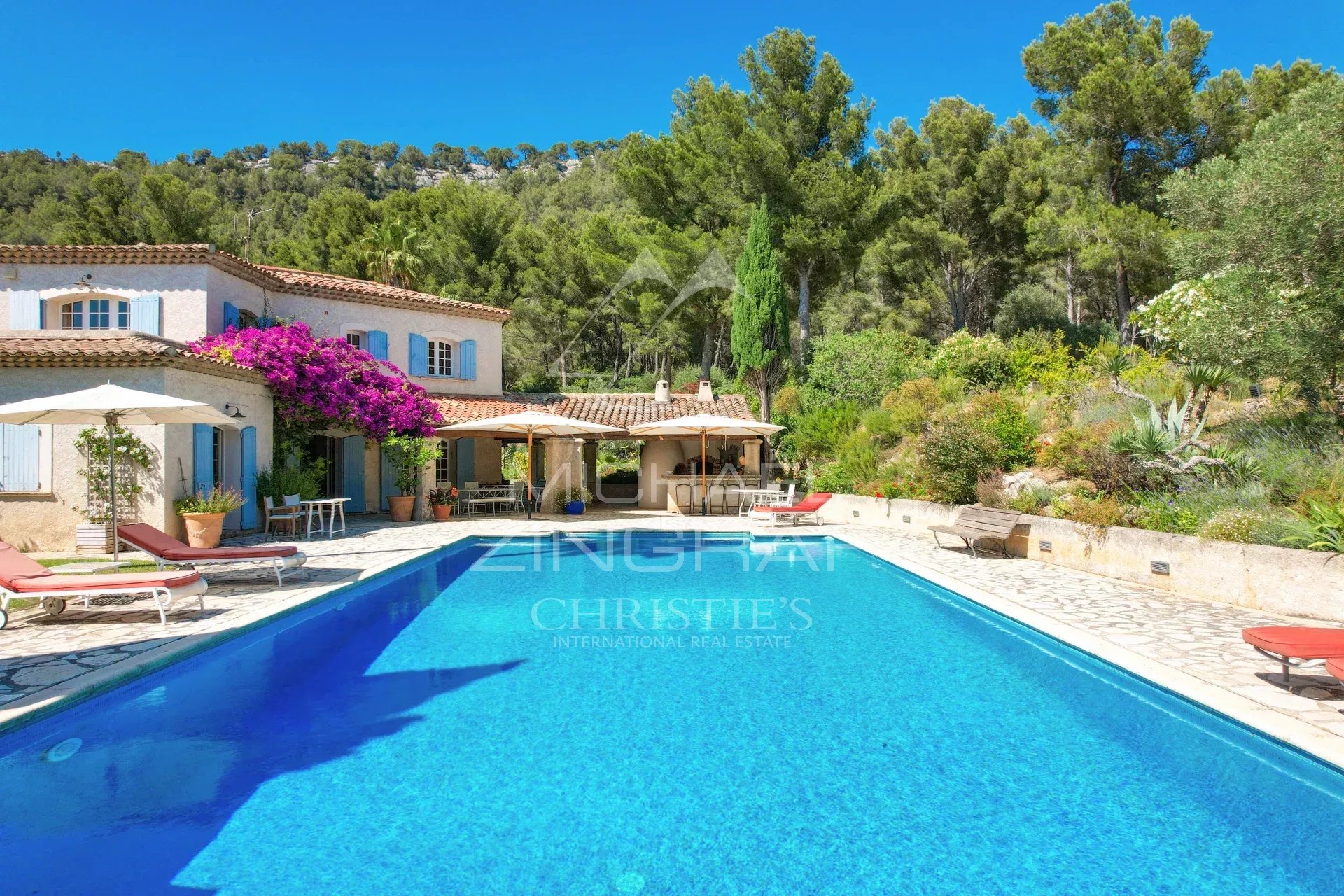 Reference : MZIAX0581Nestled on the sought-after hills between Saint-Cyr-sur-Mer and La Cadière d'Azur, this sumptuous single-story villa embodies Provençal refinement in a natural and unspoiled setting, offering an exceptional living environment nestled...