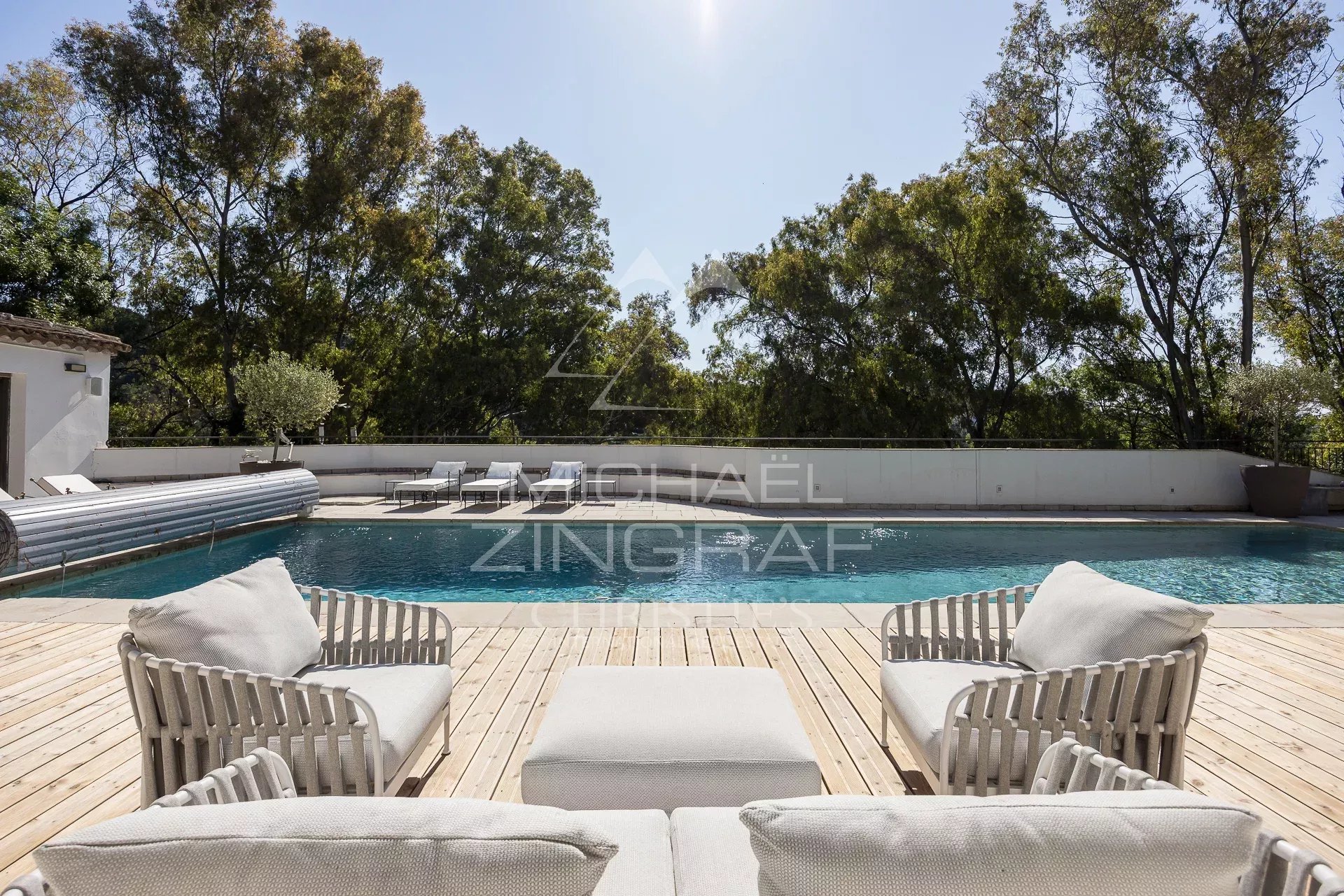 Ideally facing south, this stunning neo-Provençal villa has been entirely renovated with high-end materials, and is set on a beautifully landscaped flat plot of 2,333 sqm featuring a heated swimming...