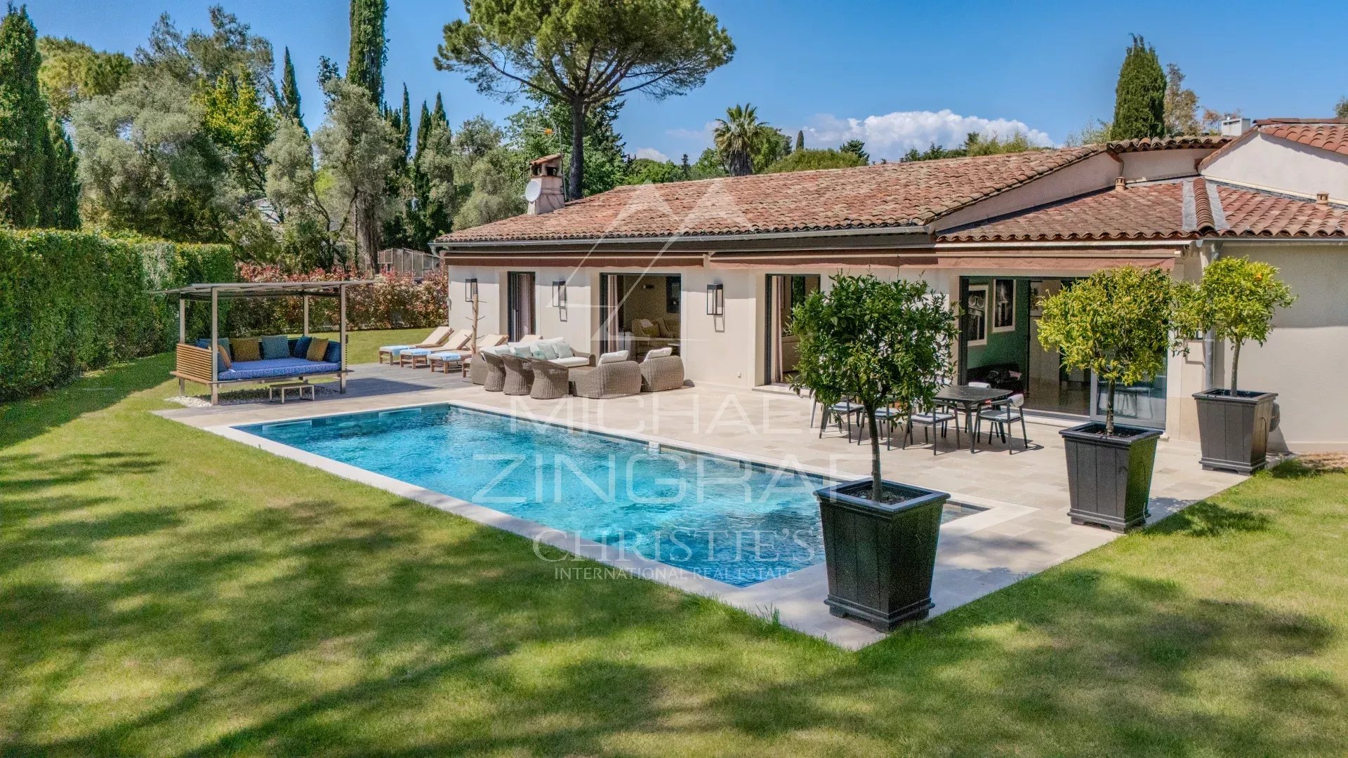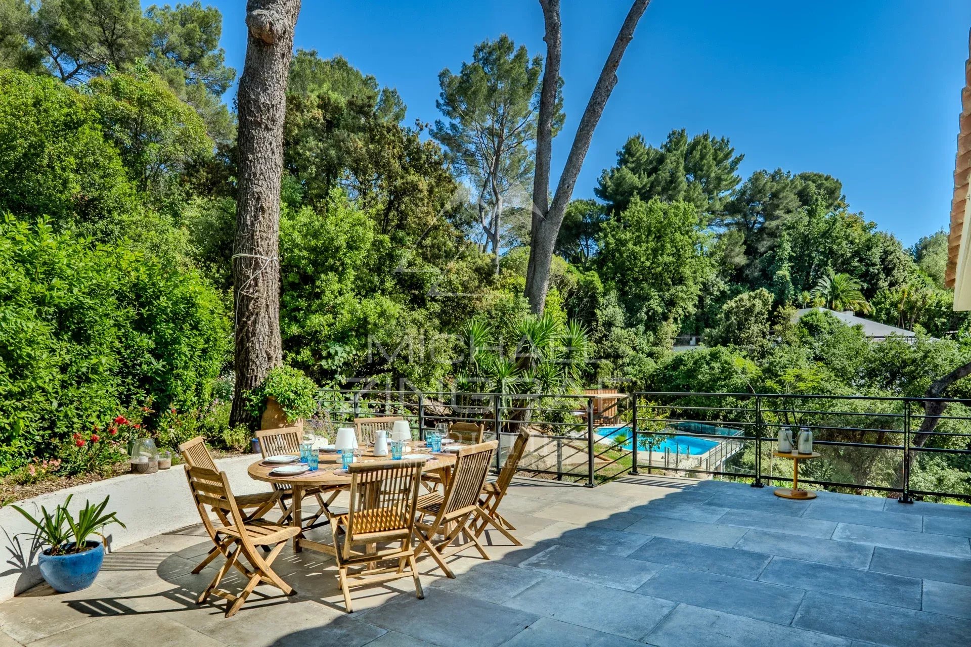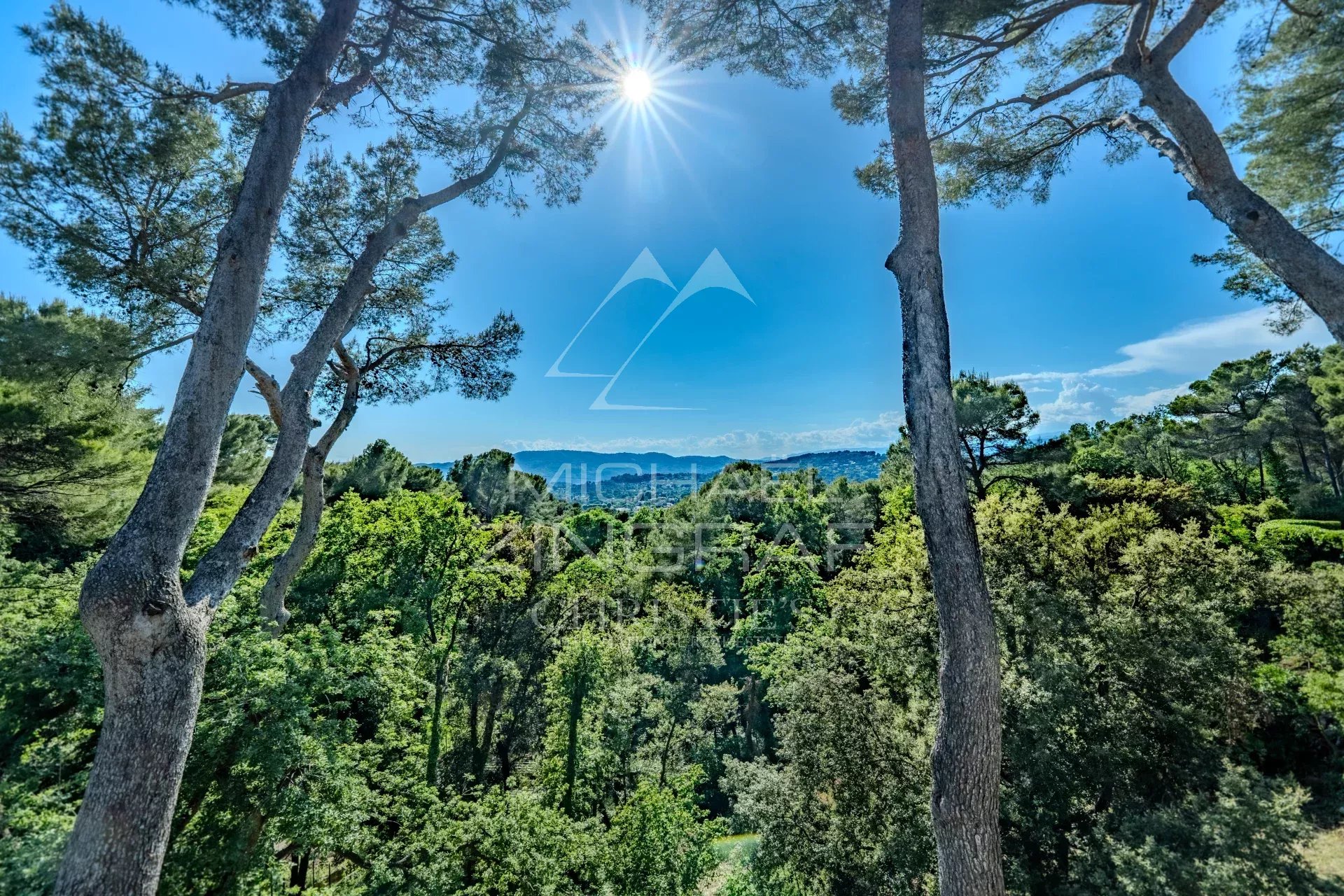 Located on dominant position and in a private domain, this stunning villa boasts open views over the old village of Mougins, the surrounding hills and the Mediterranean Sea. Entirely renovated...
