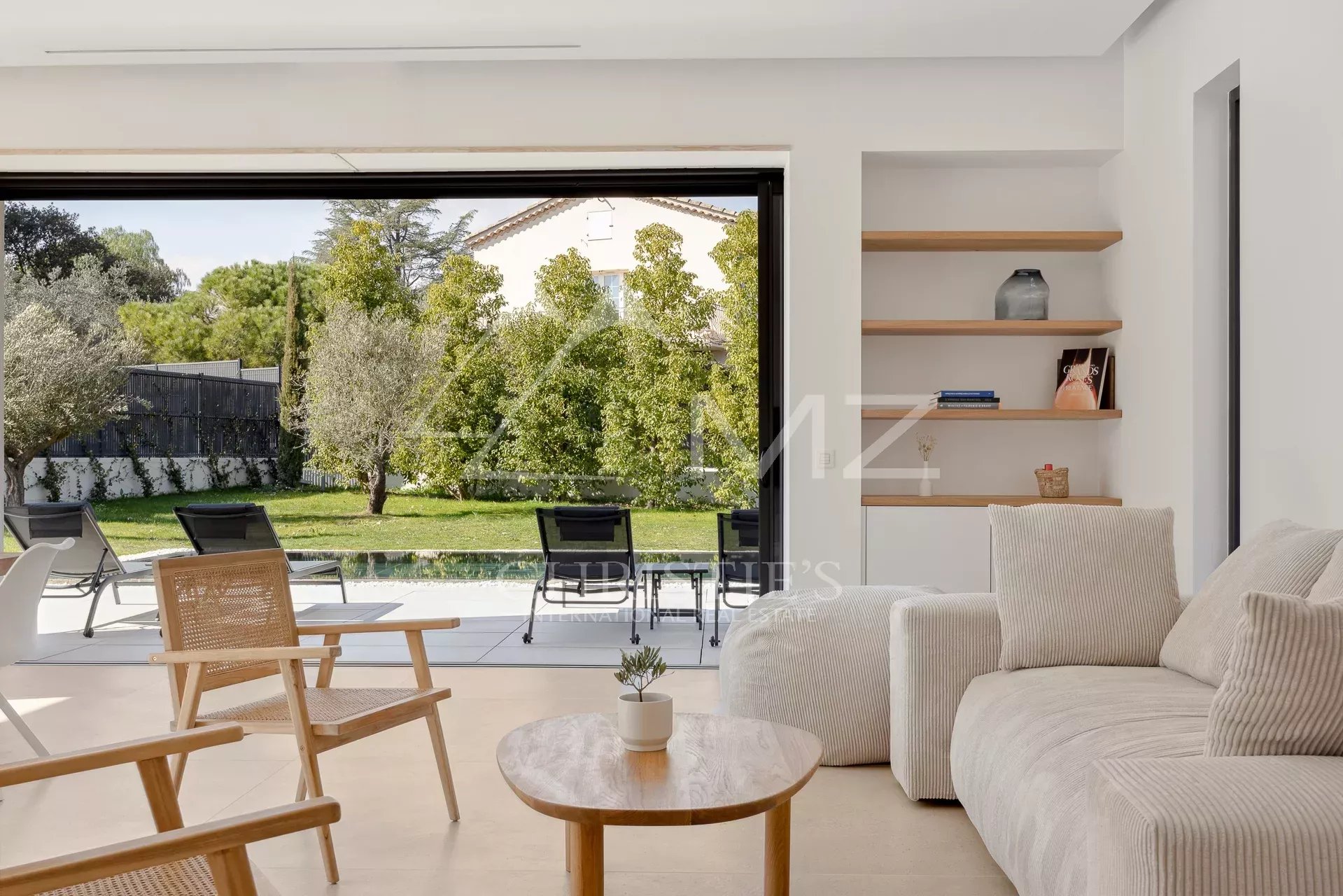 Located in Mougins, in a green and residential setting close to Cannes, this fully renovated villa offers an ideal environment for a peaceful stay. The property features generous living spaces...