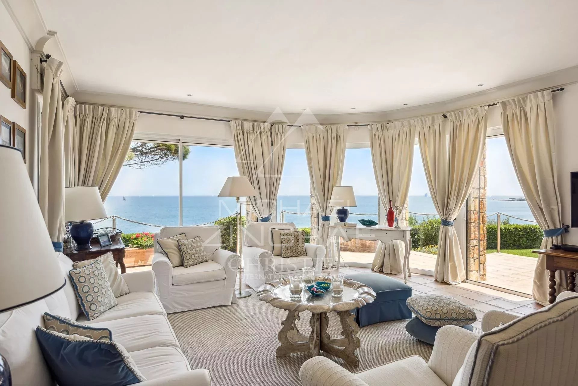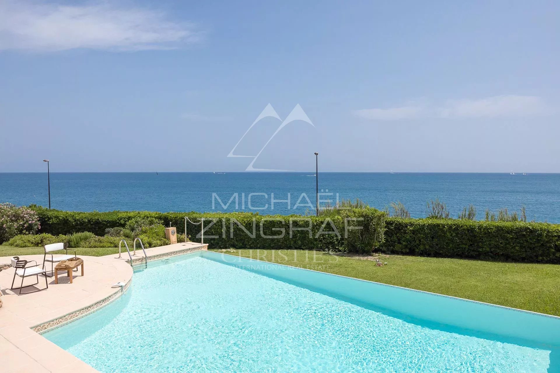 Unique waterfront villa of approx. 470 sqm in Cap d'Antibes. It offers on the ground floor a living room with sea view and terrace access, a fully equipped kitchen, a...