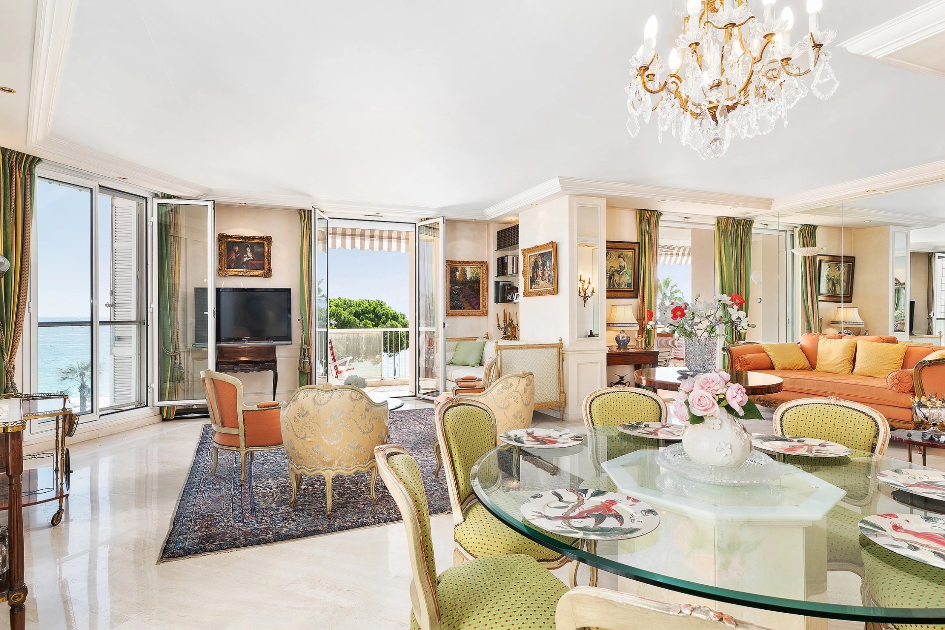 In Cannes, facing the Croisette and enjoying the gardens of the Grand-Hôtel, in a beautiful Art-deco residence, vast reception apartment with light-filled bourgeois volumes and high ceilings. Entrance gallery with...