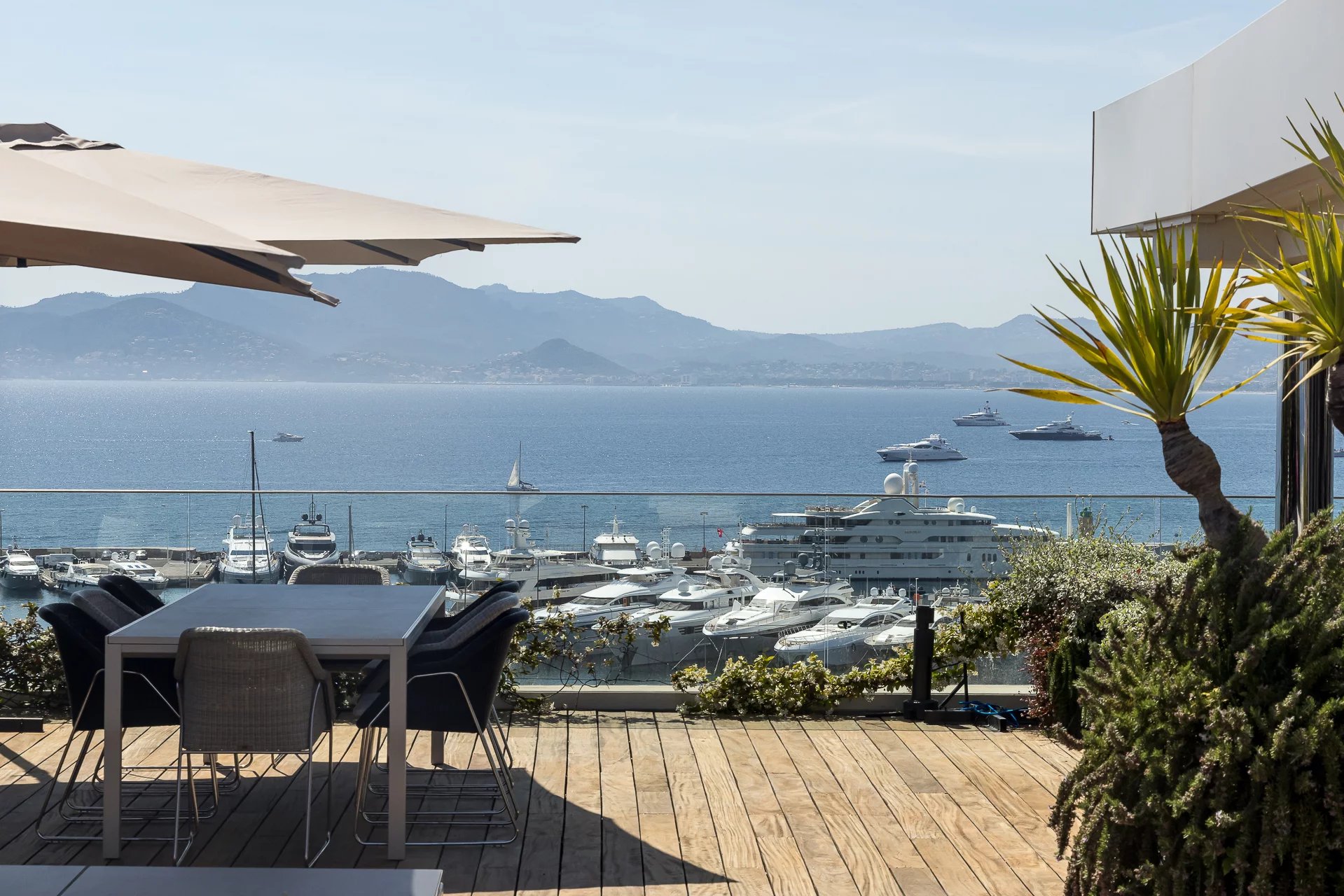 Located opposite the legendary Port Canto, in a prestigious residence, discover this elegant duplex penthouse offering refined features and a panoramic sea view over the Bay of Cannes and the...