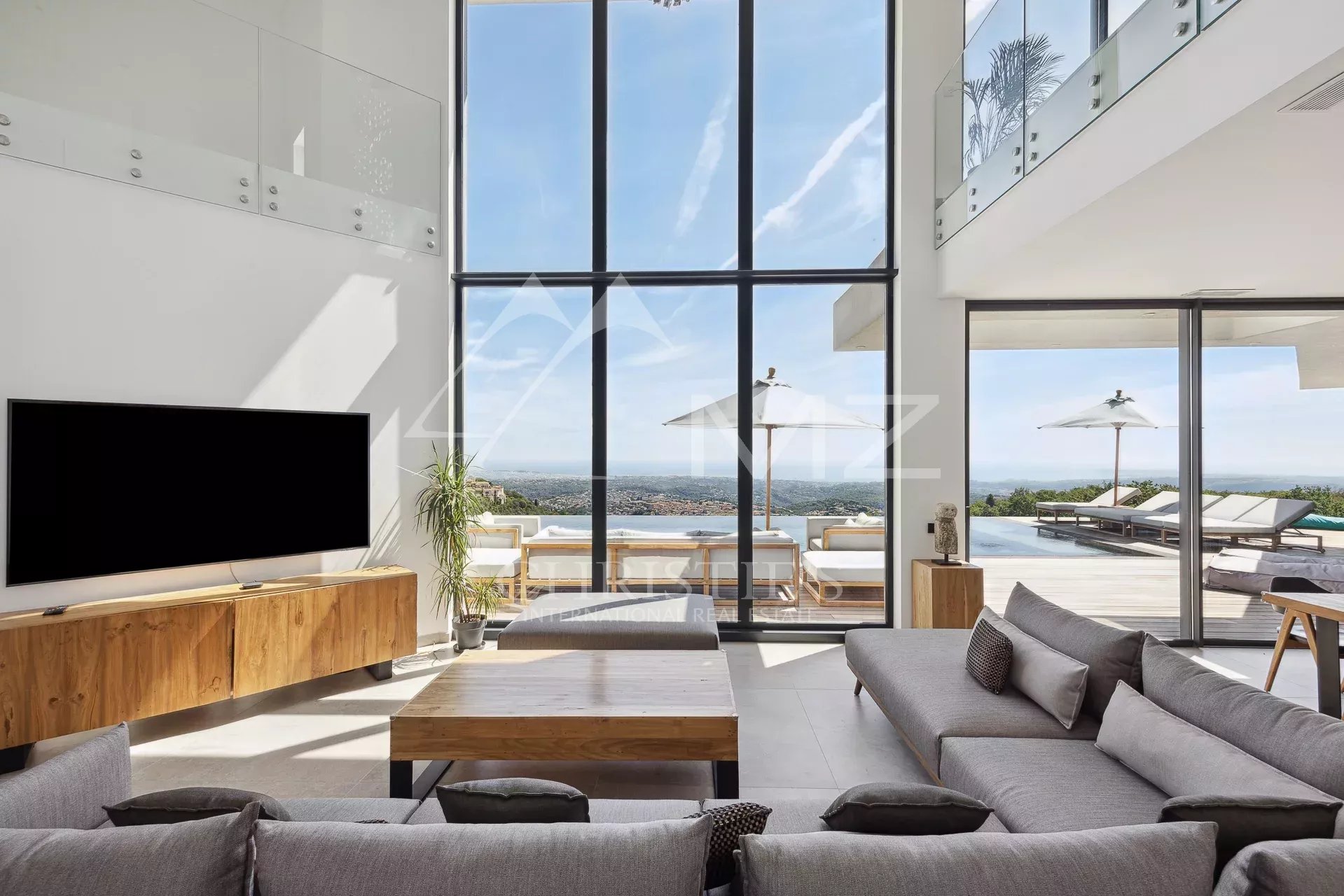 This prestigious contemporary villa in Tourrettes-sur-Loup boasts panoramic views of the Mediterranean and the hills, yet is close to the village in a peaceful setting. Its 2,500m² grounds feature a...