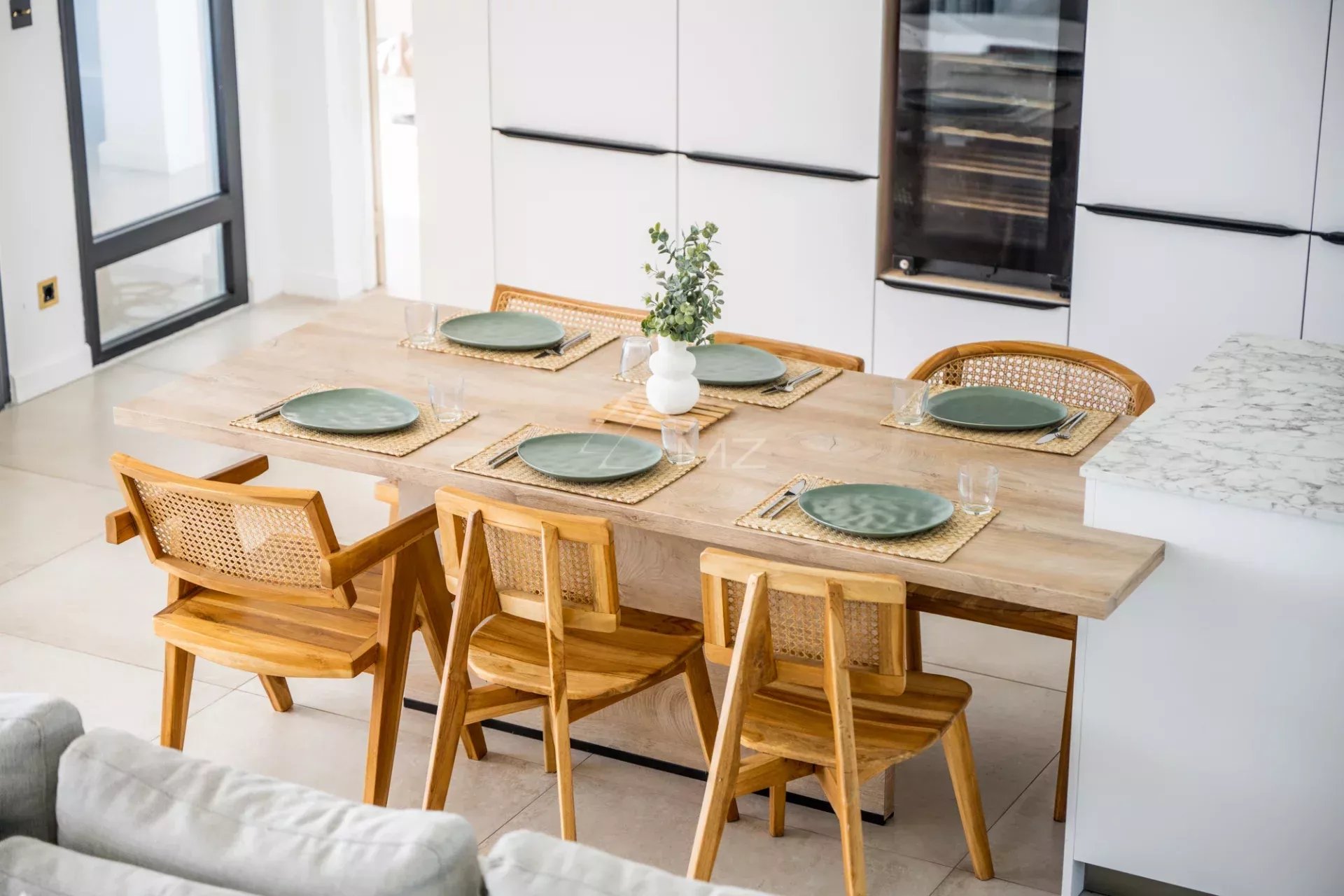 Inside, a large modern kitchen with a central island awaits you. The spacious living room, around 62 m², opens onto a beautiful 25 m² verandah, extended by a 12-meter pool, perfect for relaxing while enjoying the view.
