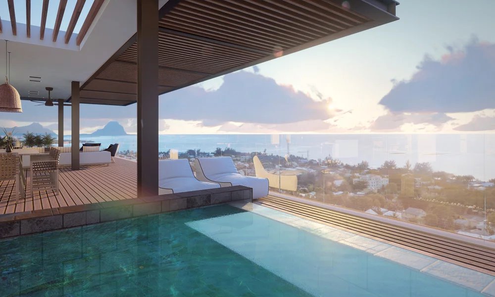 Legend Hill villas offer a majestic place with a private pool in perfect harmony with the untouched nature and the lagoon, offering a daydream view. Interiors with exceptional services, large living rooms, open kitchen, winery, 5 bedrooms and bathrooms, laundry and dressing room ... where luxury and comfort meet to create a prestigious living environment. A sleek decor as a contemporary reflection of the Mauritian tradition.