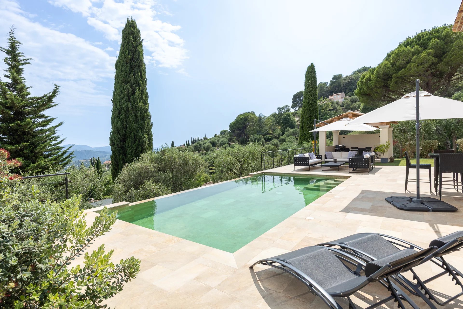 Perched in a commanding position in the charming village of Spéracèdes, this contemporary villa built in 2024 offers the perfect harmony of modern comfort and a truly exceptional location. Like a living postcard, it boasts breathtaking panoramic views over the Bay of Cannes and the rolling hills of the hinterland.