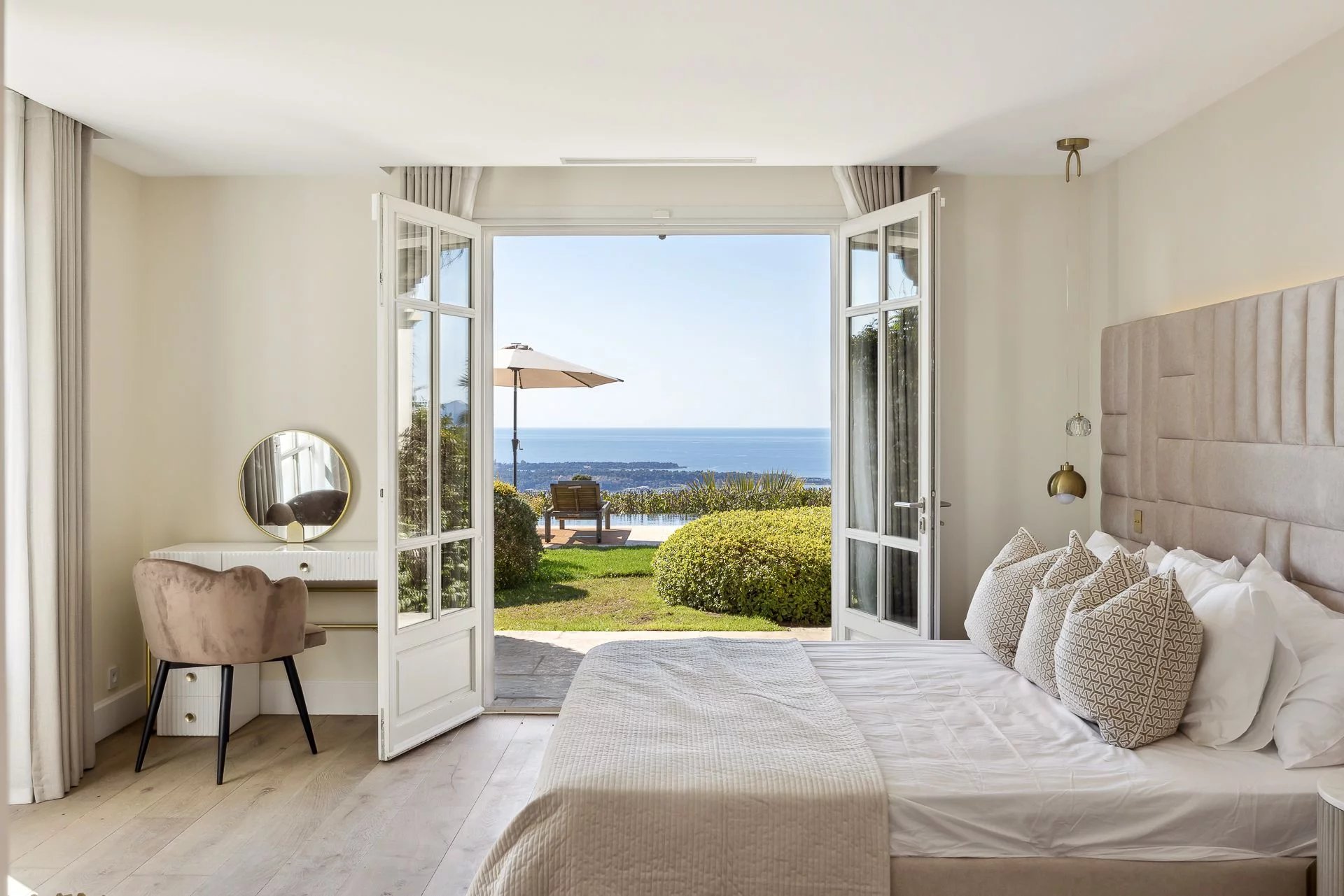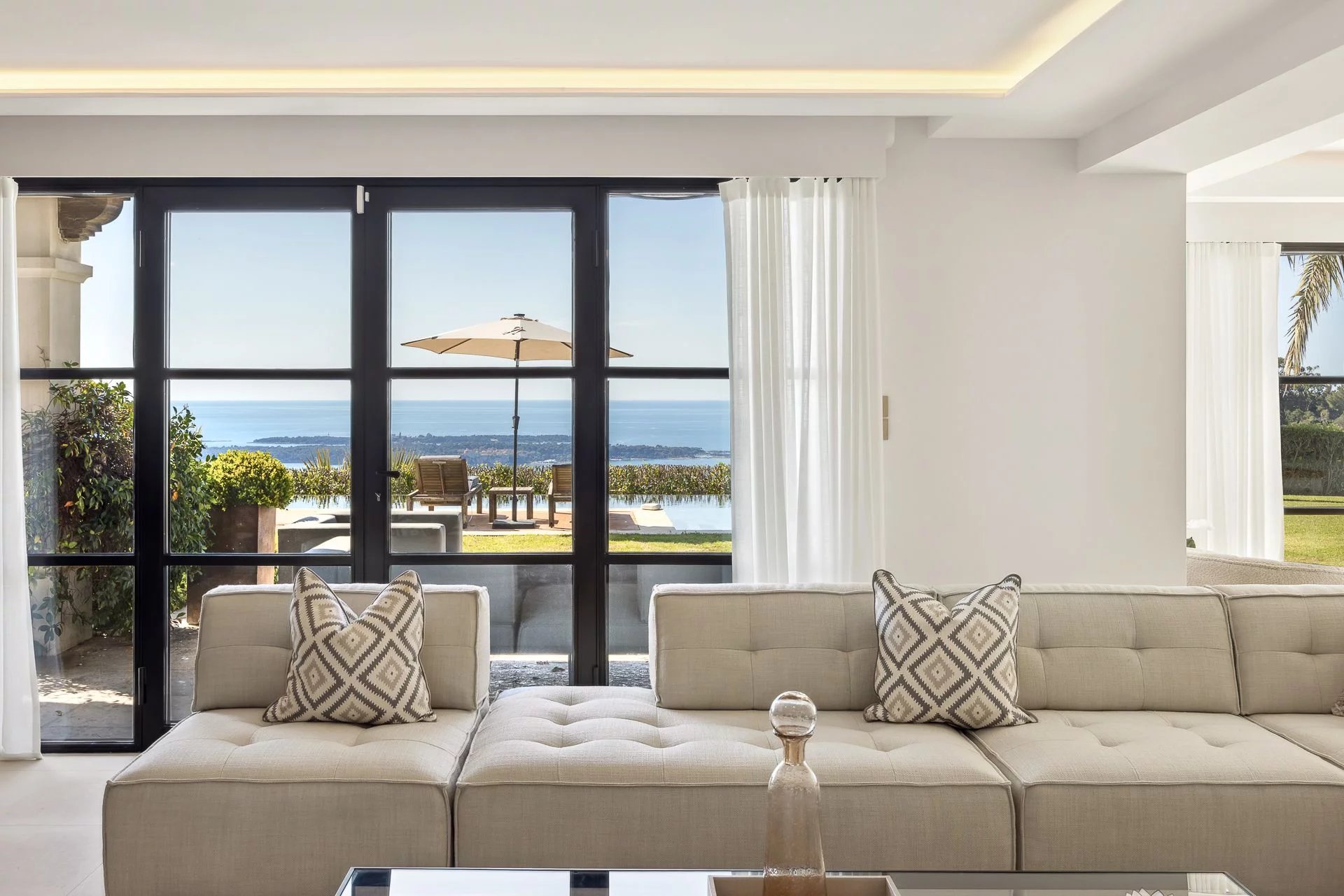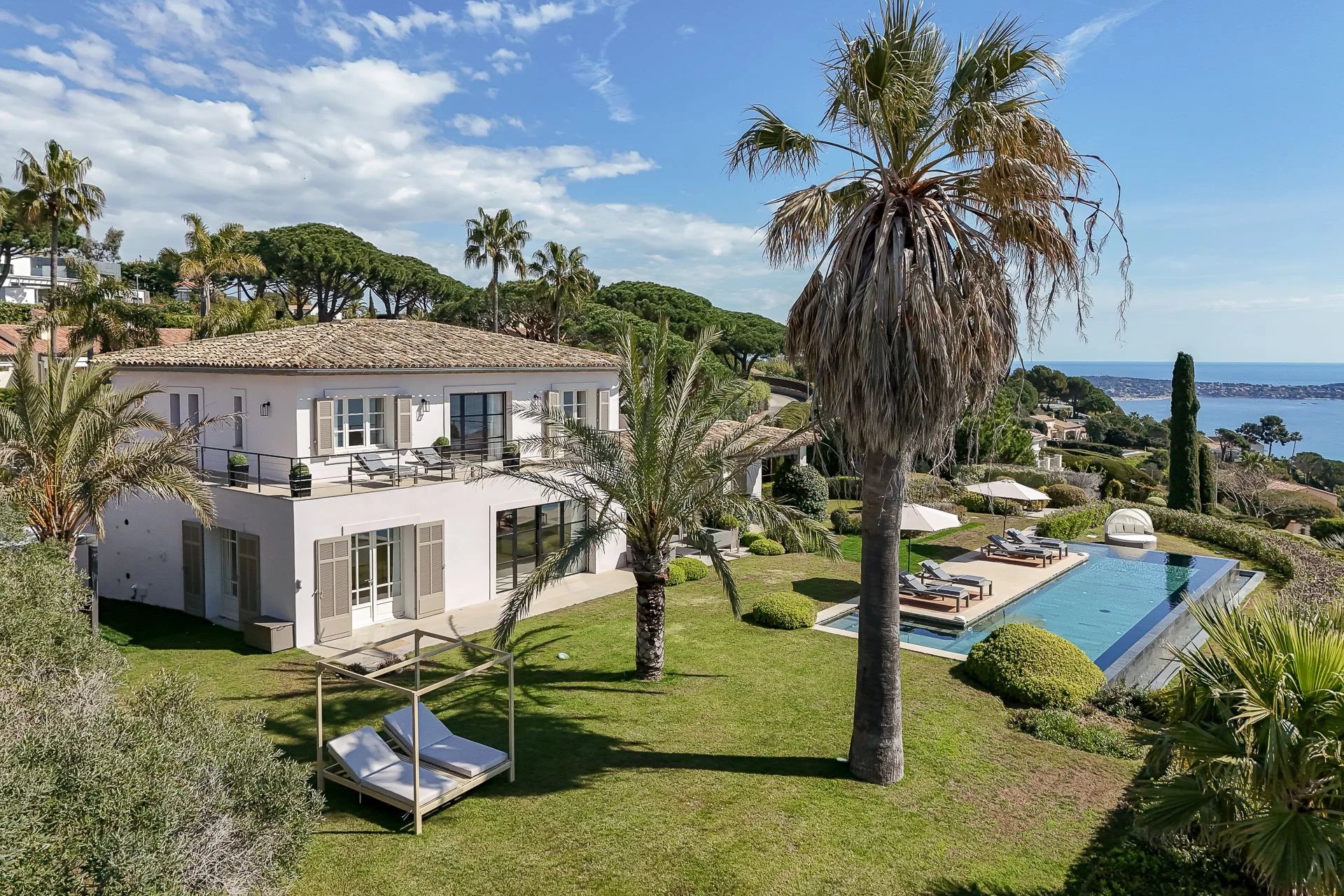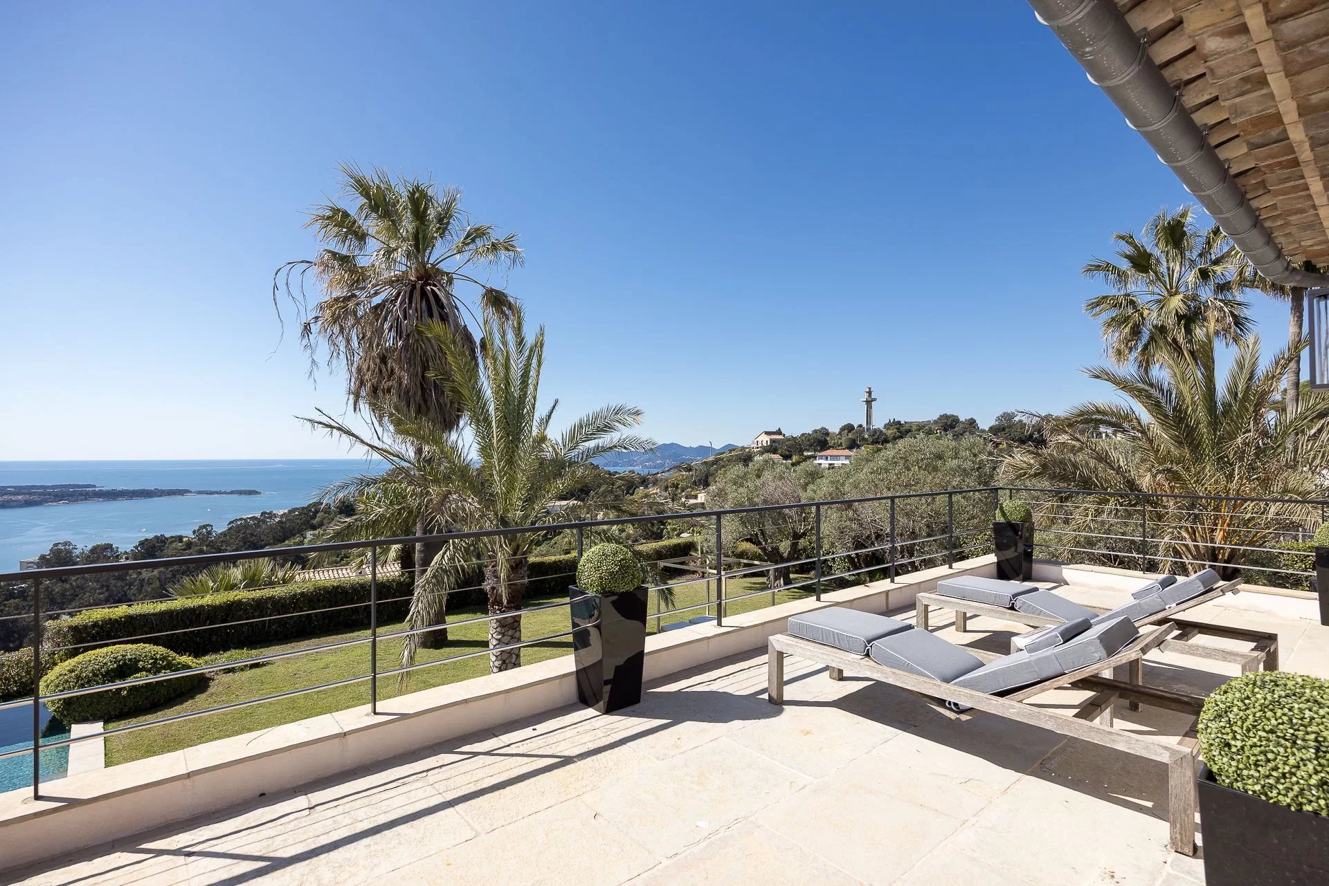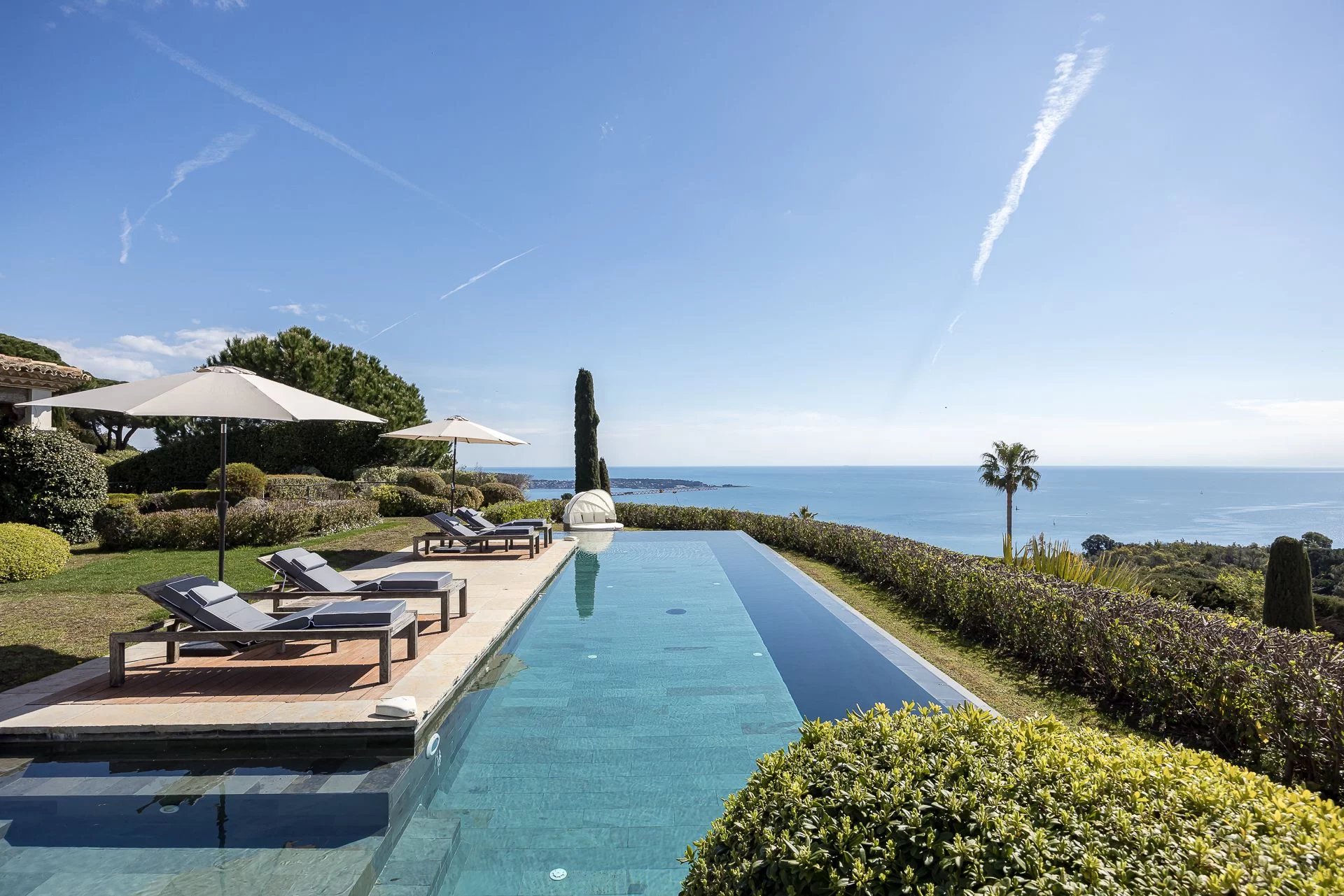 This magnificent villa of approximately 450 sq m, renovated to a very modern standard, spread over three levels, offers a very large, bright living room/kitchen with panoramic sea views and opening onto a large garden with a 13x4 heated swimming pool.