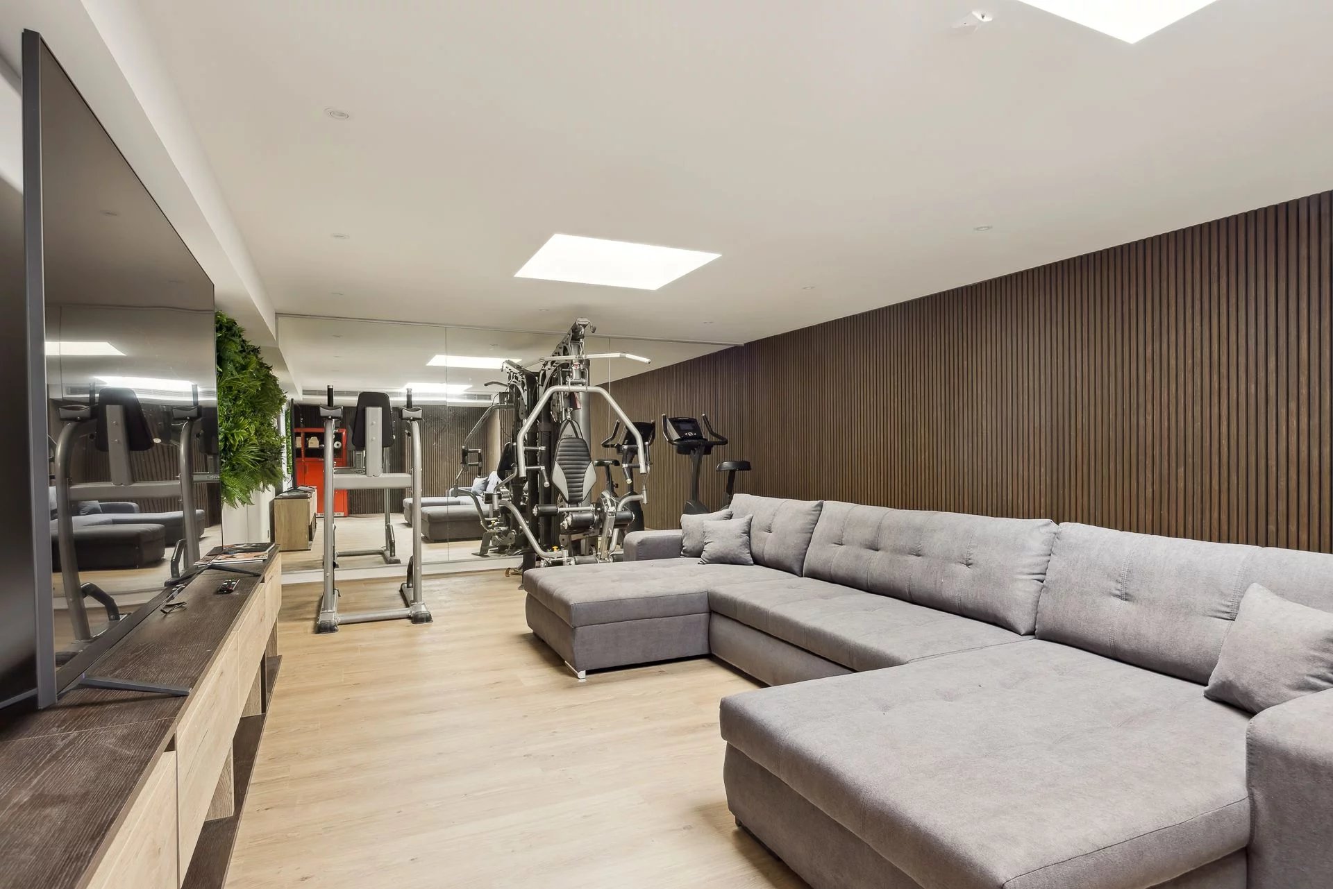 Four en-suite bedrooms, including a master suite, a studio, and a gym.