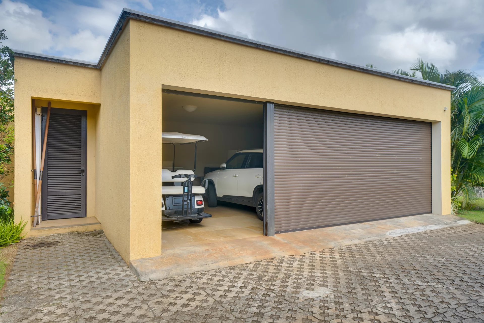 The villa is sold fully furnished and includes a golf cart, all included in the price.
