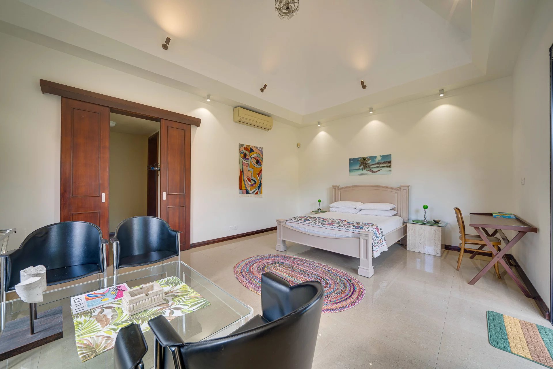 4 air-conditioned en suite bedrooms, each with private access to the garden,