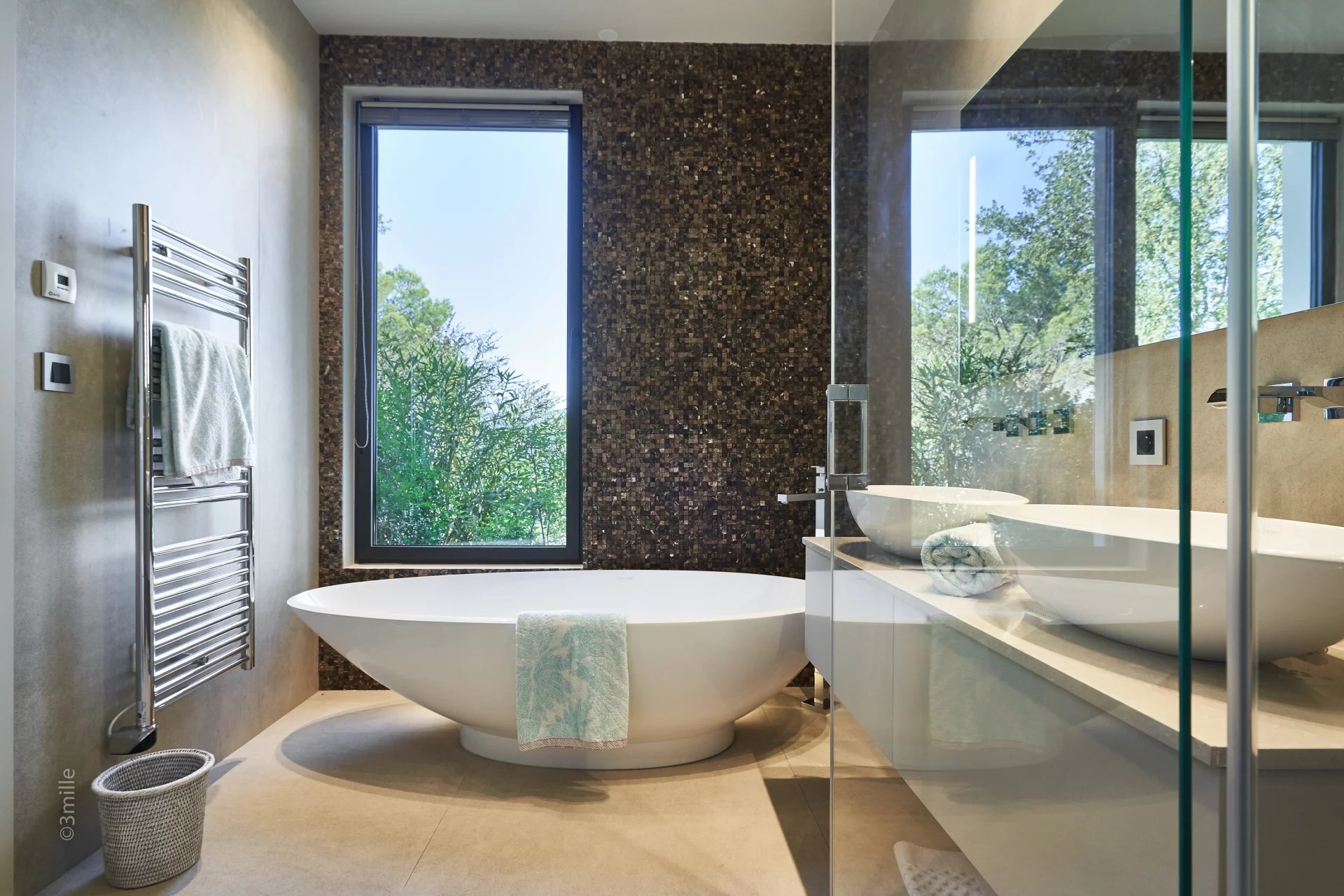 A Sonos audio system, high-speed Wi-Fi, air conditioning throughout the villa, a safe, and a TV in every bedroom ensure comfort and convenience.