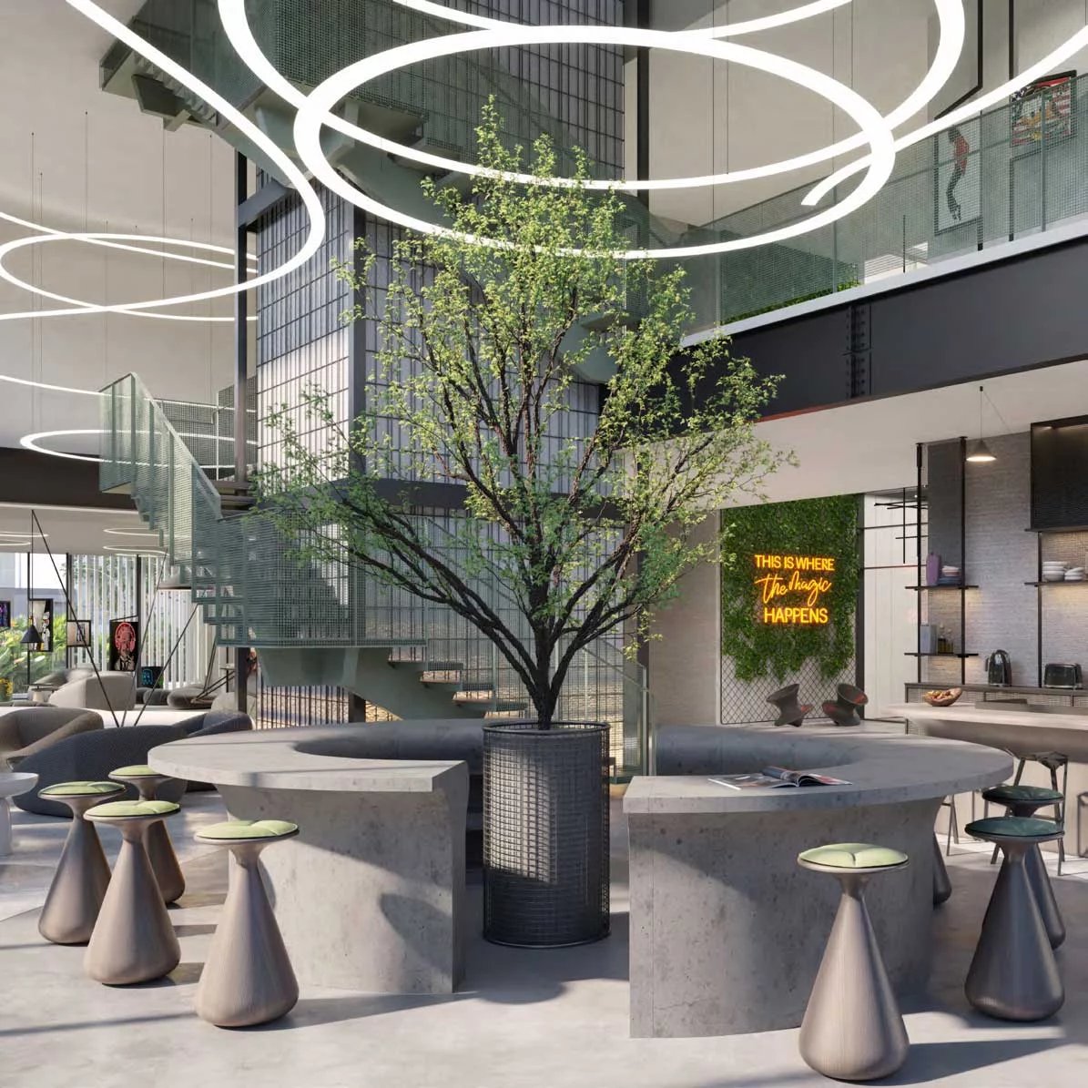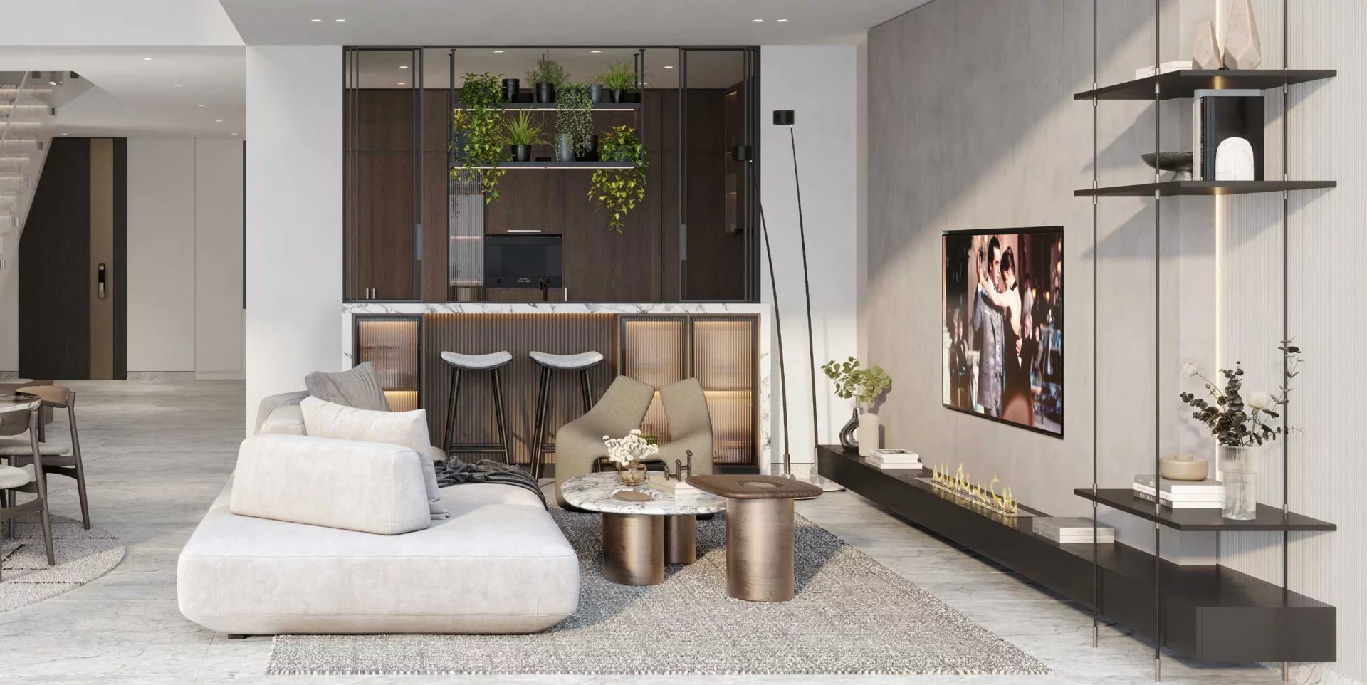 At the very heart of The Watercrest, and from where the community gets its name, is a man-made oasis. It is a place to relax and refresh, among tranquil springs and reconnect with the nature that surrounds it. Throughout its course, The River meanders through experiences for both adults and children, from a shaded plunge pool to splash play areas and a gently flowing waterway. Living here feels like being on a perpetual holiday, offering residents a constant retreat within their own homes. The combination of triplex townhouses, fourplex townhouses, and villas results in a beautifully diverse neighbourhood aesthetic. The architecture of each home is a timeless balance of solid and porous materials contrasting with large glass facades that direct natural light into calming patinas. To reconnect the homes with their surroundings, aromatic flowers grow at their boundaries and entrances.