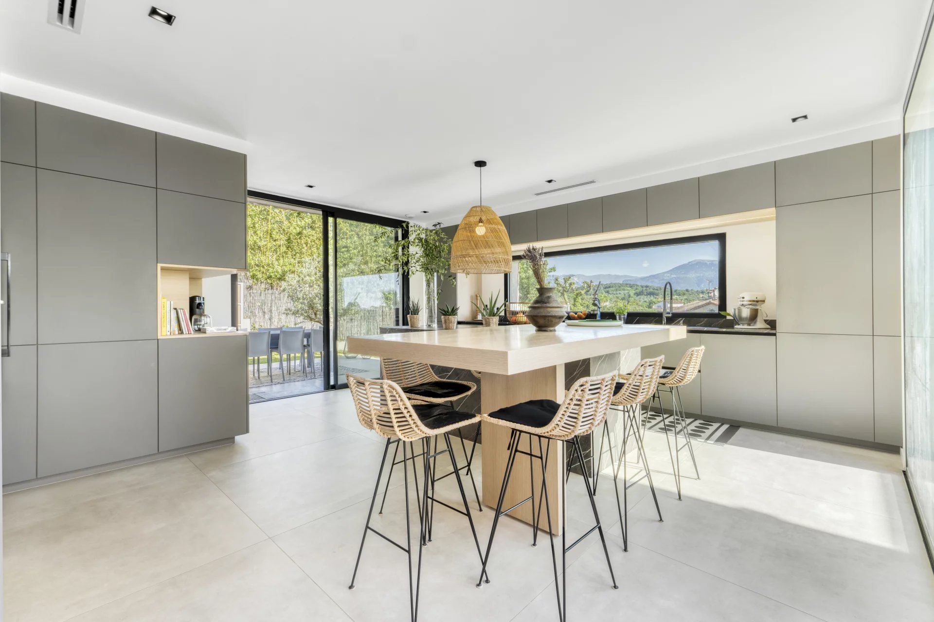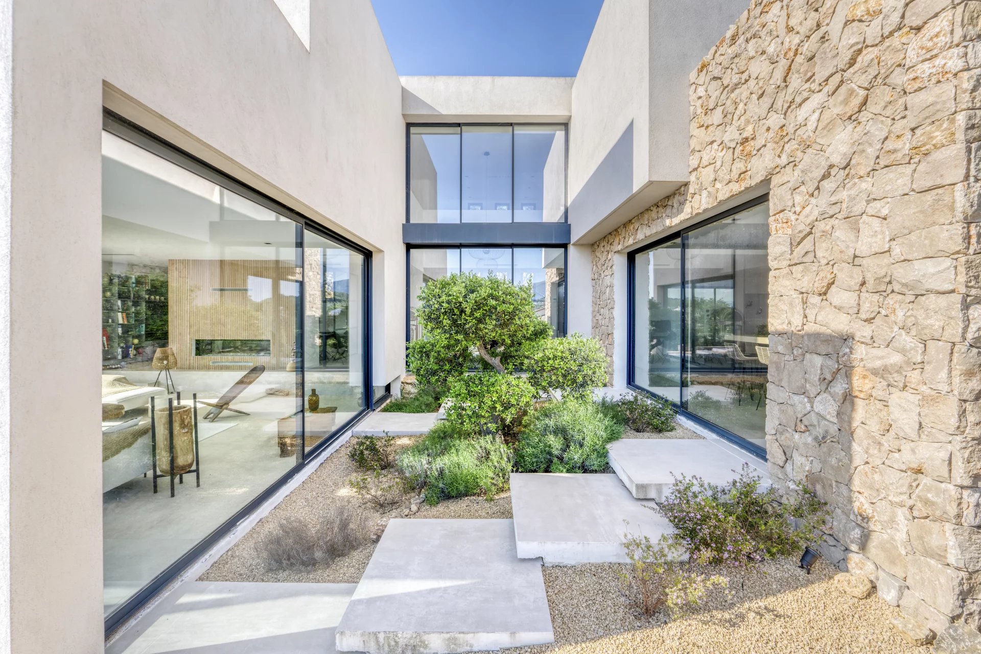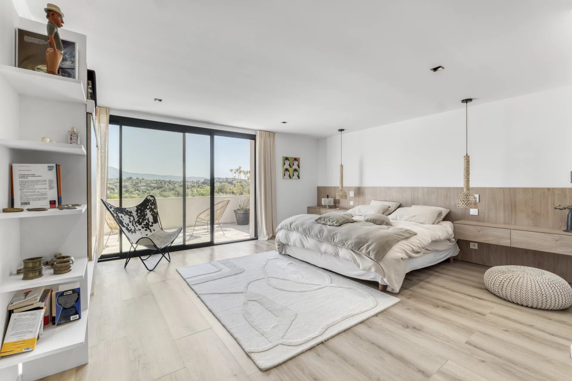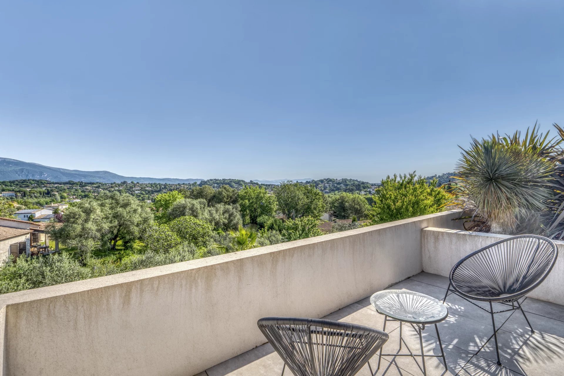 Located just a few minutes’ walk from the village of Valbonne, this contemporary villa offers approximately 300 m² of living space on a 1,545 m² plot. It enjoys open views of the surrounding hills.