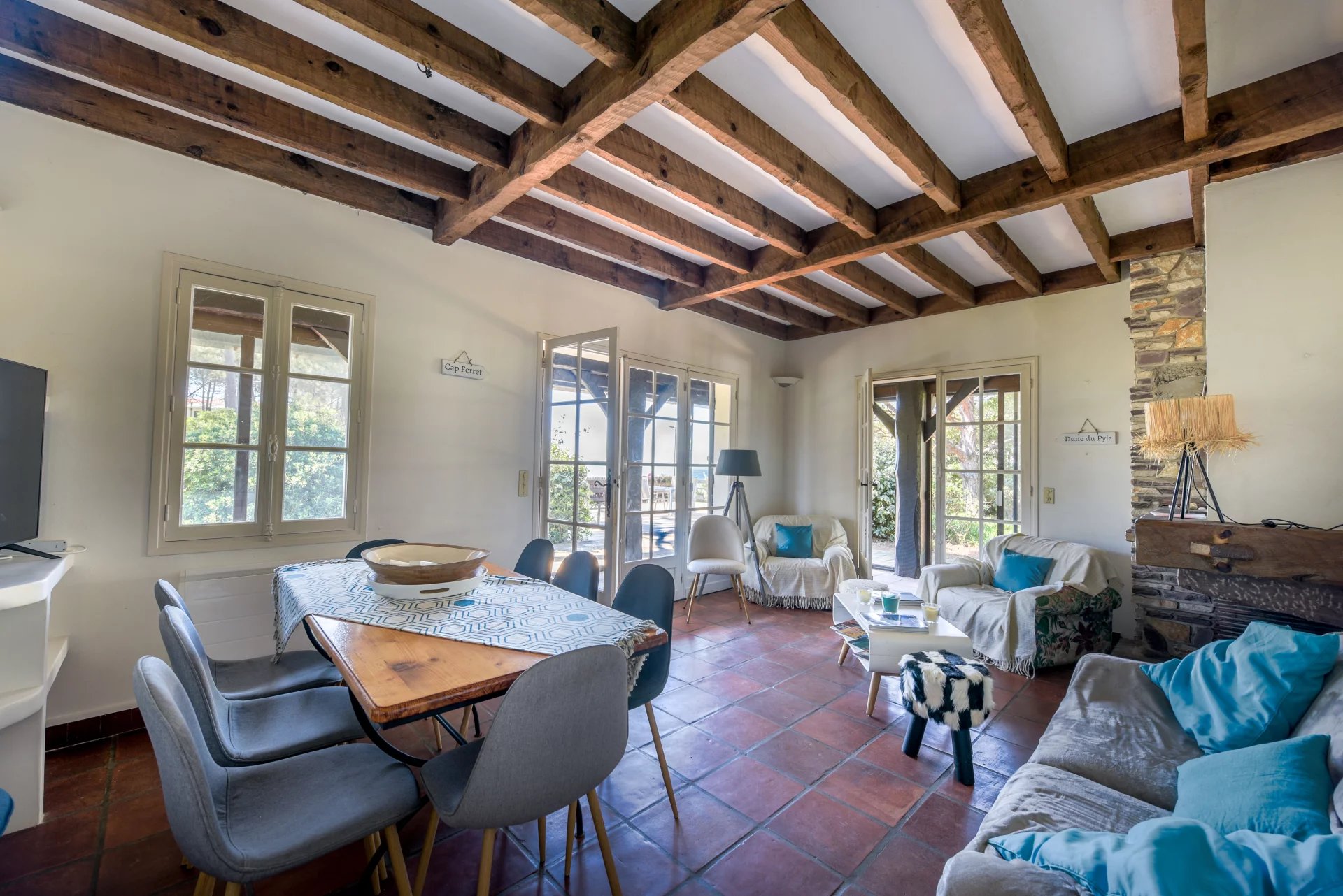 Located 10 meters from the beach, this traditional single-storey villa offers, from its terrace, a breathtaking view of the Bassin and its Banc d'Arguin. It can accommodate up to 9 people.