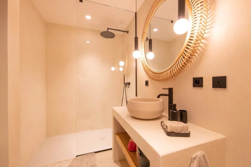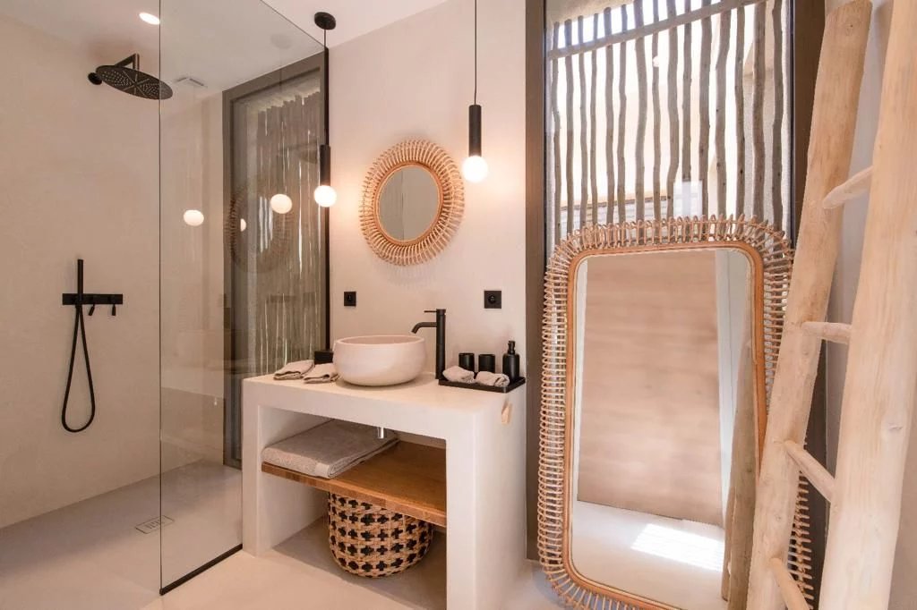 It is composed of a large and bright living room open to the outside, a fully equipped kitchen, 6 bedrooms en suite and a children's room, a massage room, a game room and a discotheque.