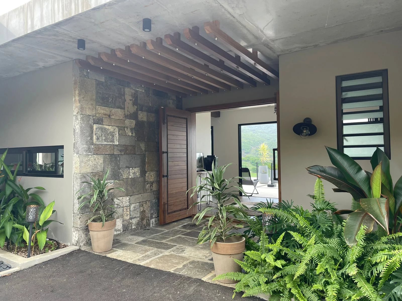 Septic tank (water treatment) collecting all household water, treating it, and sending it to a 10,000L tank used for irrigation. Rainwater is also collected. Automatic irrigation system.